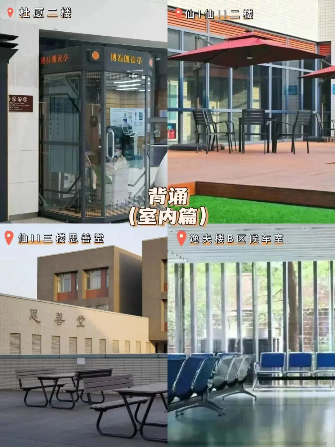 📍仙I树荫长廊、杜厦朗读亭、逸夫楼候车室等
