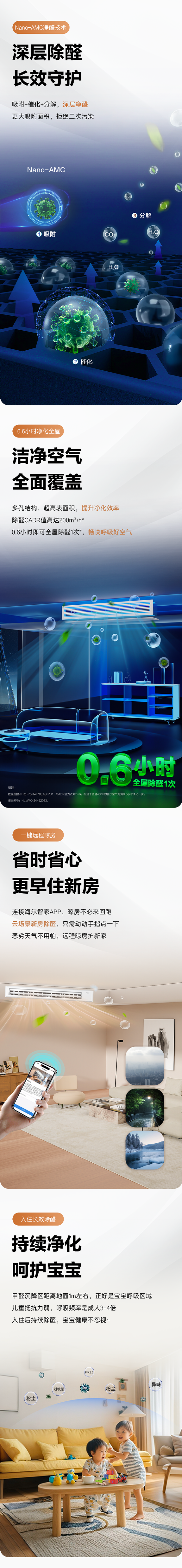 1、0.6小时全屋除醛一次:数据是指KFRd-75NW/78EA81PU1,CADR值为200m³/h,相当于普通40㎡的客厅空气约为0.6小时净化一次。报告编号:No.:WK-24-52083。