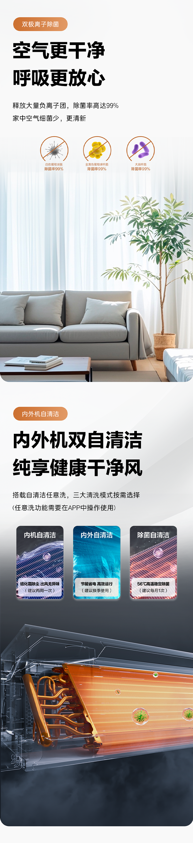 2、除菌率99%是指KFRd-75NW/78EA81PU1机型,由第三方检测在特定工况的实验室测得,实际使用环境不同,可能与实验室检测数据存在差异。