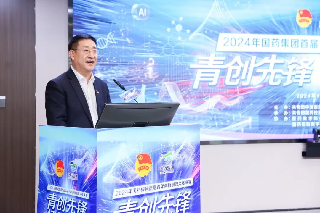 大赛现场传达了国药集团党委书记、董事长白忠泉对2024年国药集团首届青年创新创效大赛的批示。白忠泉在批示中指出,近年来,作为医药卫生健康领域的“国家队”,国药集团努力发挥中央企业科技创新、产业控制、安全支撑作用,在医药研发、科技攻关等方面取得了显著成果。当前,国药集团坚决落实国务院国资委要求,牢牢把握新时代、新征程中央企业的新使命、新任务,把科技创新摆在“头号工程”的重要位置。国药集团举办首届青年创新创效大赛,创建青创先锋工作室,就是希望持续加强集团青年创新人才培养和创新成果支持,营造向上向新的文化氛围。希望广大国药青年勇担时代使命,勇于创新、敢于实践,争当创新创效先锋,把此次青年创新创效大赛成果转化为助力国药集团高质量发展的强大动力,在健康中国建设新征程上,更好地肩负起党和国家赋予国药青年的历史使命!