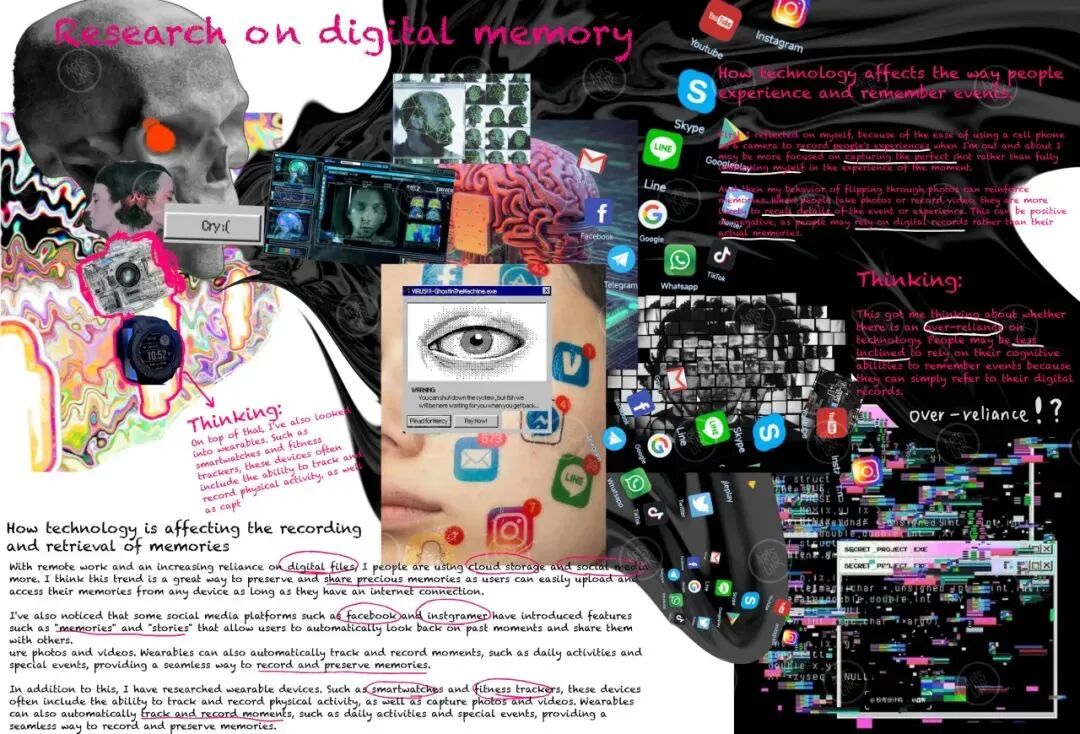 在整个作品集制作过程中,我最想感谢的就是我的导师Lorraine。从灵感拼贴、草图设计到最后的拍摄与剪辑,她一直耐心地引导我,帮助我将每一个想法具体化。