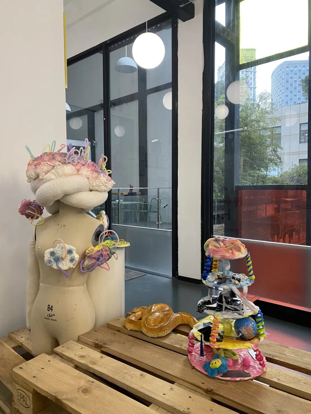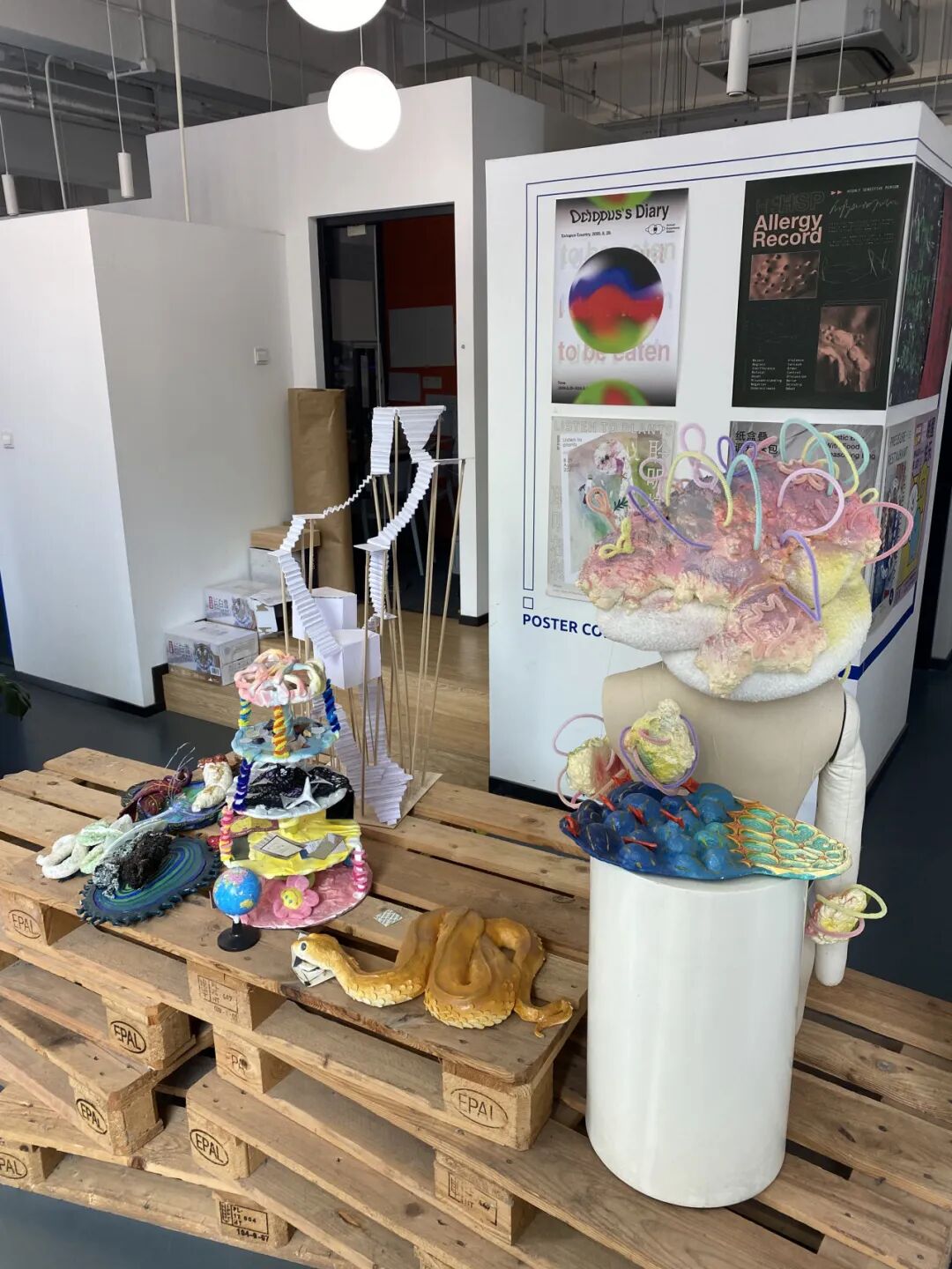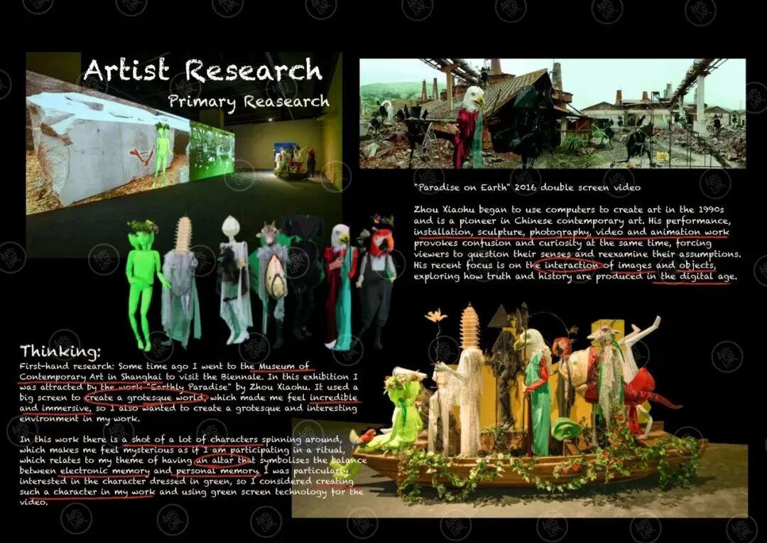 这也是我对可穿戴装置设计的第一次探索,让我感受到设计和叙事之间的深刻联系。为了增强短片的视觉效果,我还从上海双年展中汲取了灵感,特别是艺术家周啸虎的《地上乐园》。