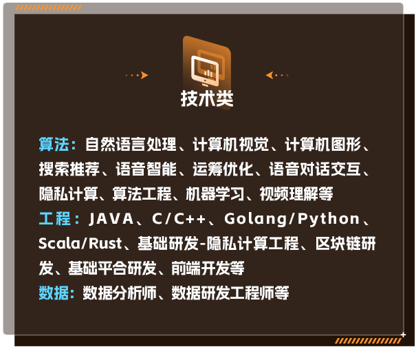 蚂蚁集团 2024 届校园招聘正式启动。本次招聘开放了技术类、产品类、运营类、设计类、风险策略类和综合类共 6 大类 14 种岗位,其中包括机器学习、算法工程、隐私计算、数据研发工程师等在内的技术岗位占比达到 80%。