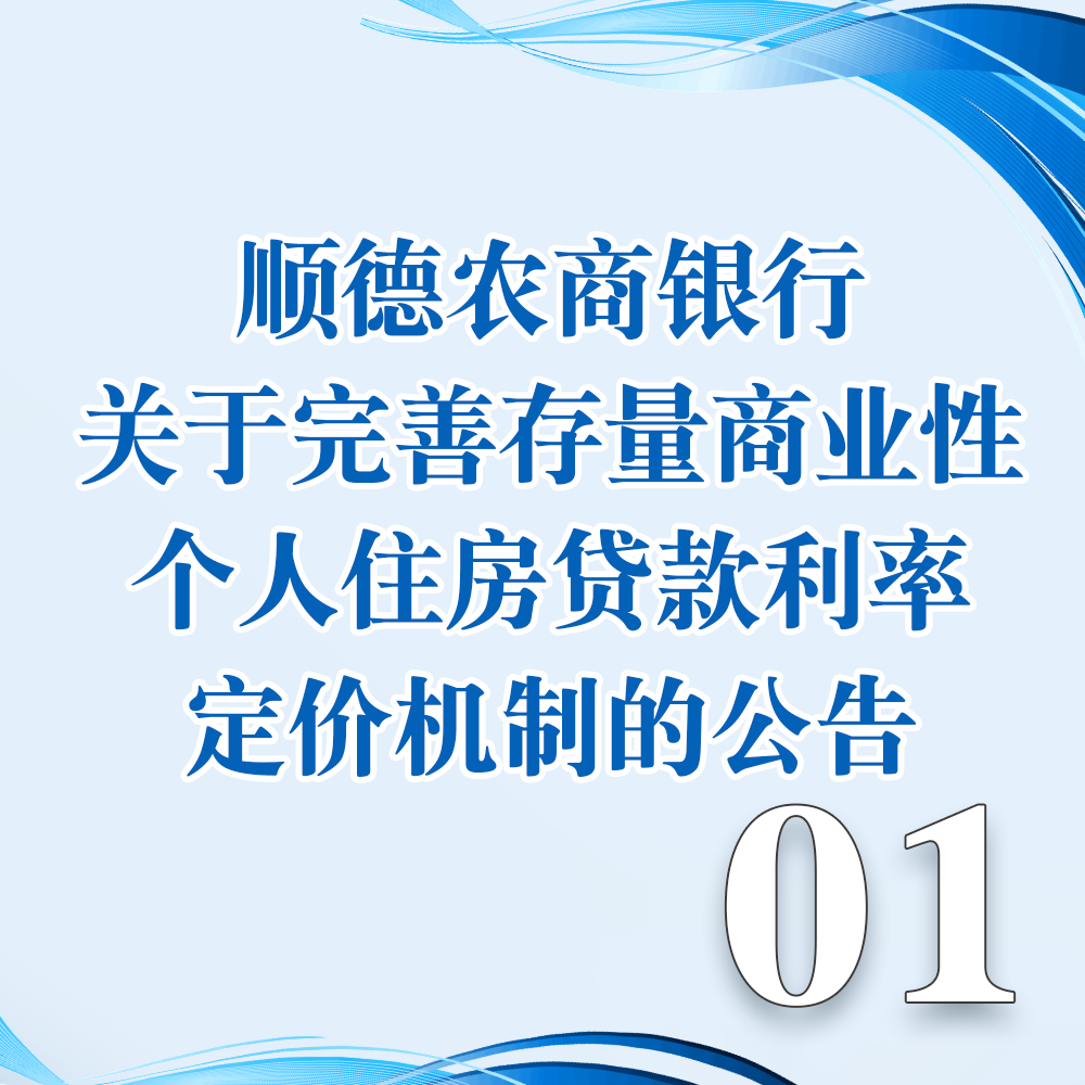 顺德农商银行关于完善存量商业性个人住房贷款利率定价机制的公告