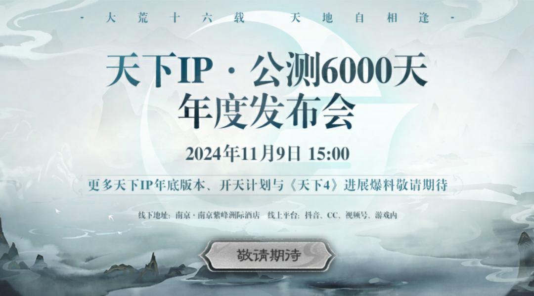 大荒十六载,天地自相逢!《天下》IP年度发布会将于11月9日15:00在南京举行!