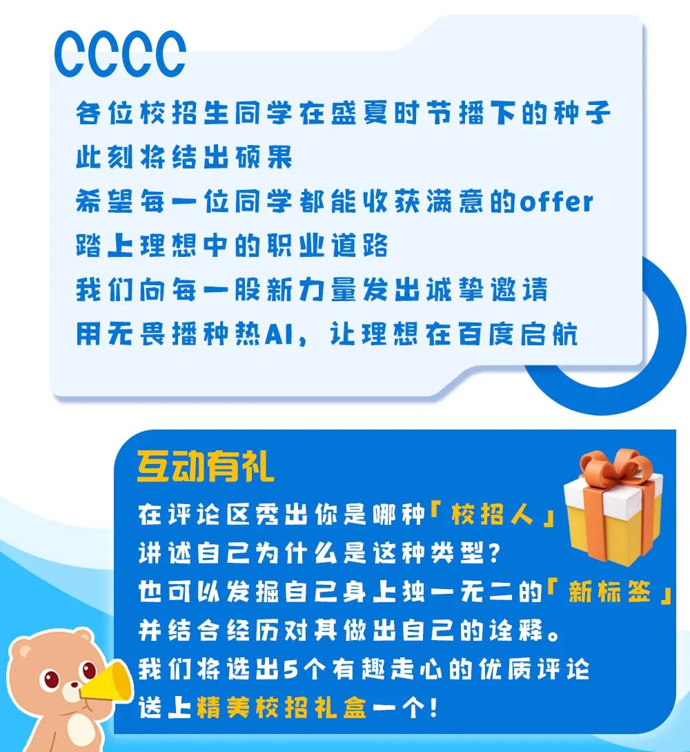 文章内容来源于公众号:百度招聘,点此可查看原文,内容版权归相关企业所有,本网站仅供交流学习。若涉及版权问题或存在侵权情况,请及时与我们联系,我们将第一时间进行删除处理。