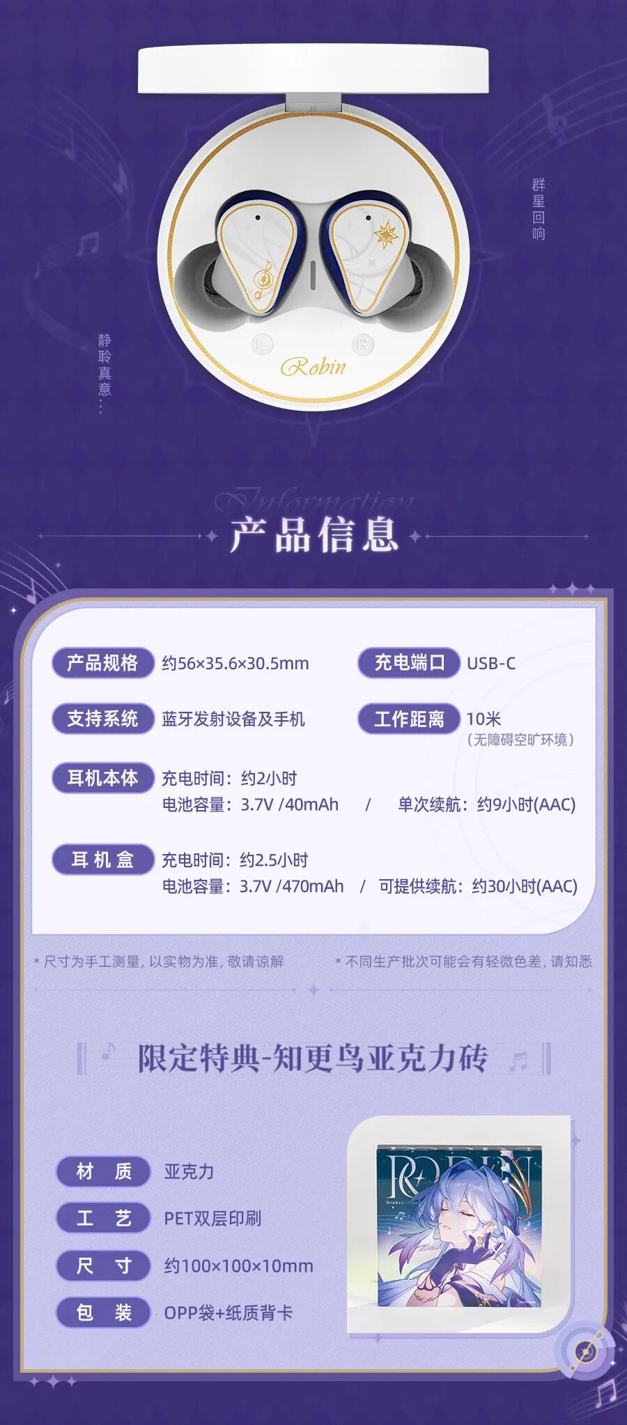 崩坏星穹铁道×水月雨 知更鸟蓝牙耳机定制联名礼盒已在官方店铺开启贩售!
