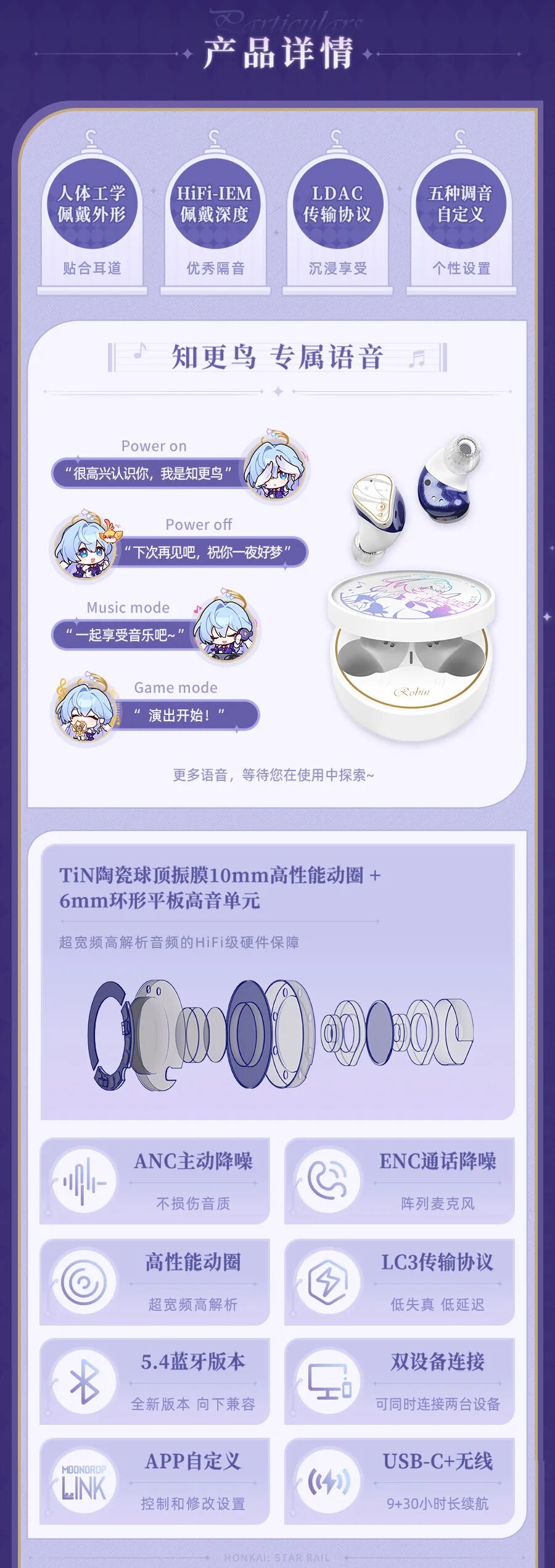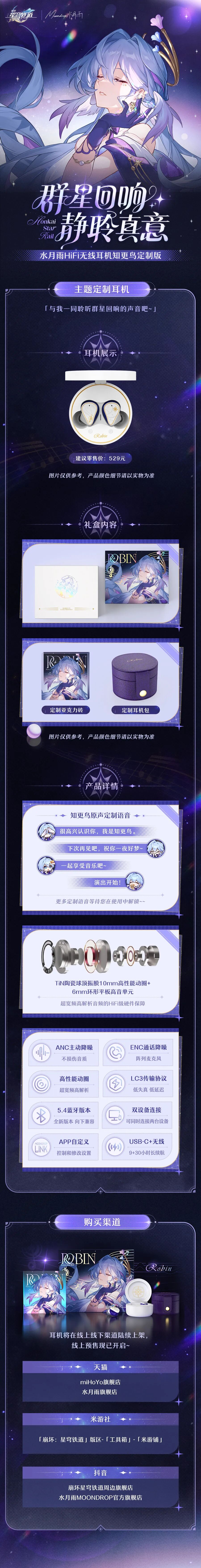 群星回响,静聆真意!《崩坏:星穹铁道》×水月雨 主题定制耳机现已开启线上预售,与知更鸟共同聆听,感受那回荡于群星之间的动人旋律吧~