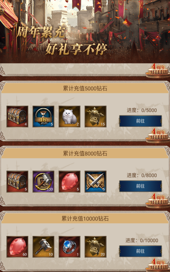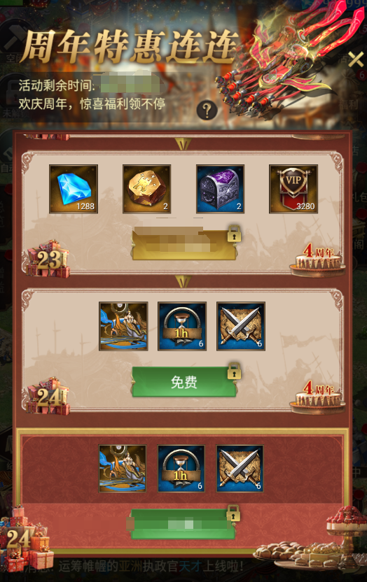 亲爱的帝国老友,四周年回归活动限时开启,让我们再次在帝国世界中相聚!