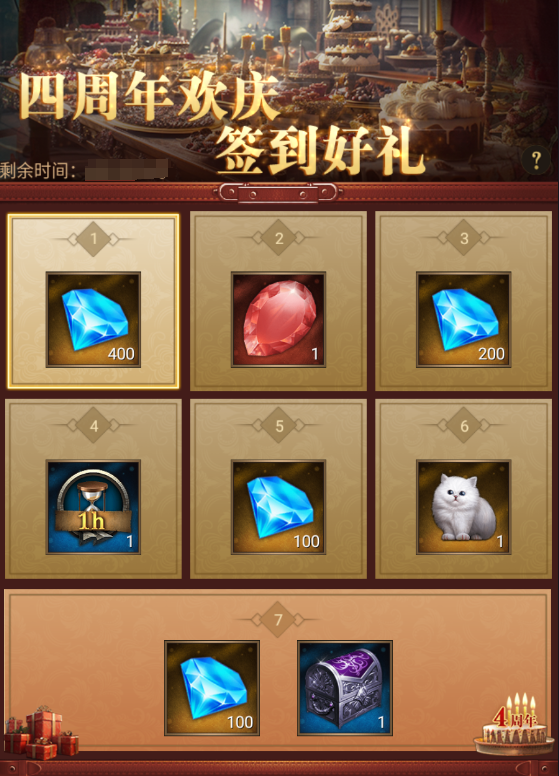 周年庆期间,领主可在活动界面充值解锁超值奖励!包含:800钻石、珠宝、波斯猫等,很划算哦~