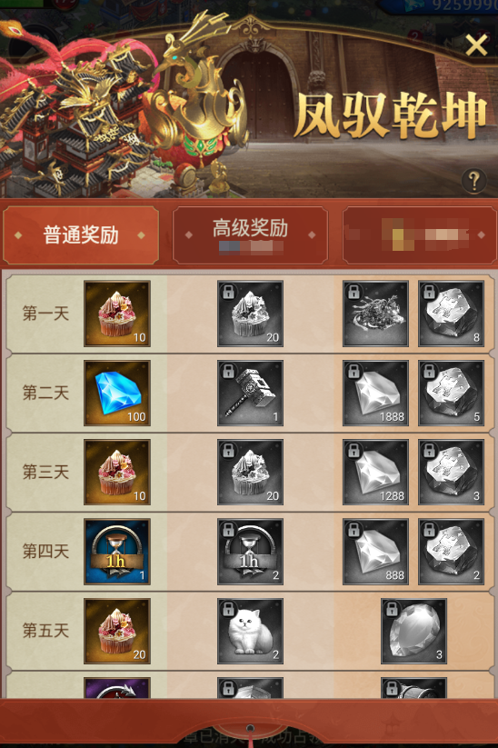 活动期间,领主可免费解锁普通奖励,或者通过钻石和充值解锁高级和豪华奖励。解锁不同类型奖励后,每日登录即可领取对应奖励!