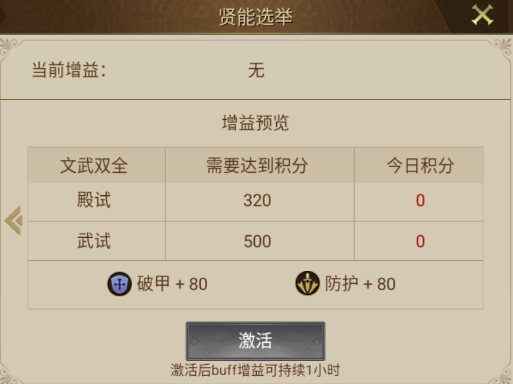 相应积分满足激活增益条件时,可激活对应的增益获得属性,主要是增加破甲和防护属性哦~ 增益效果全地图生效,作用于全体英雄!