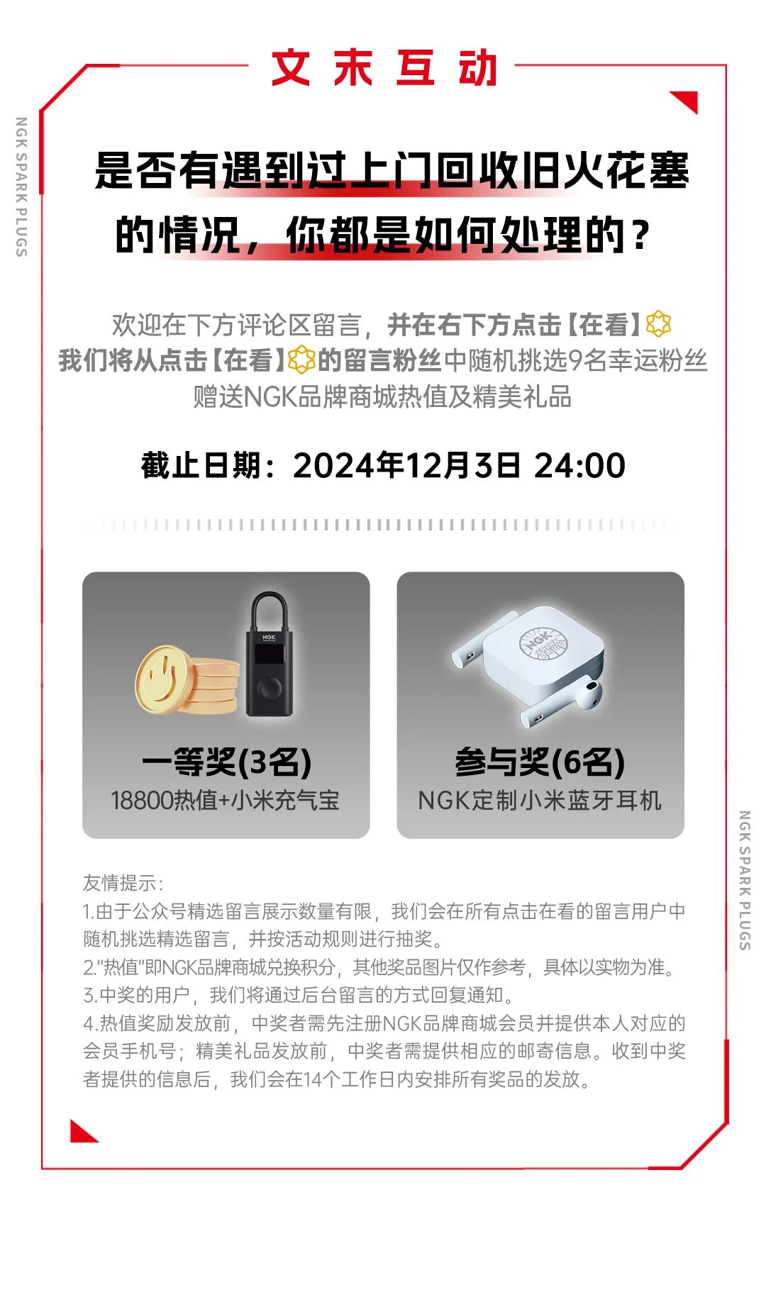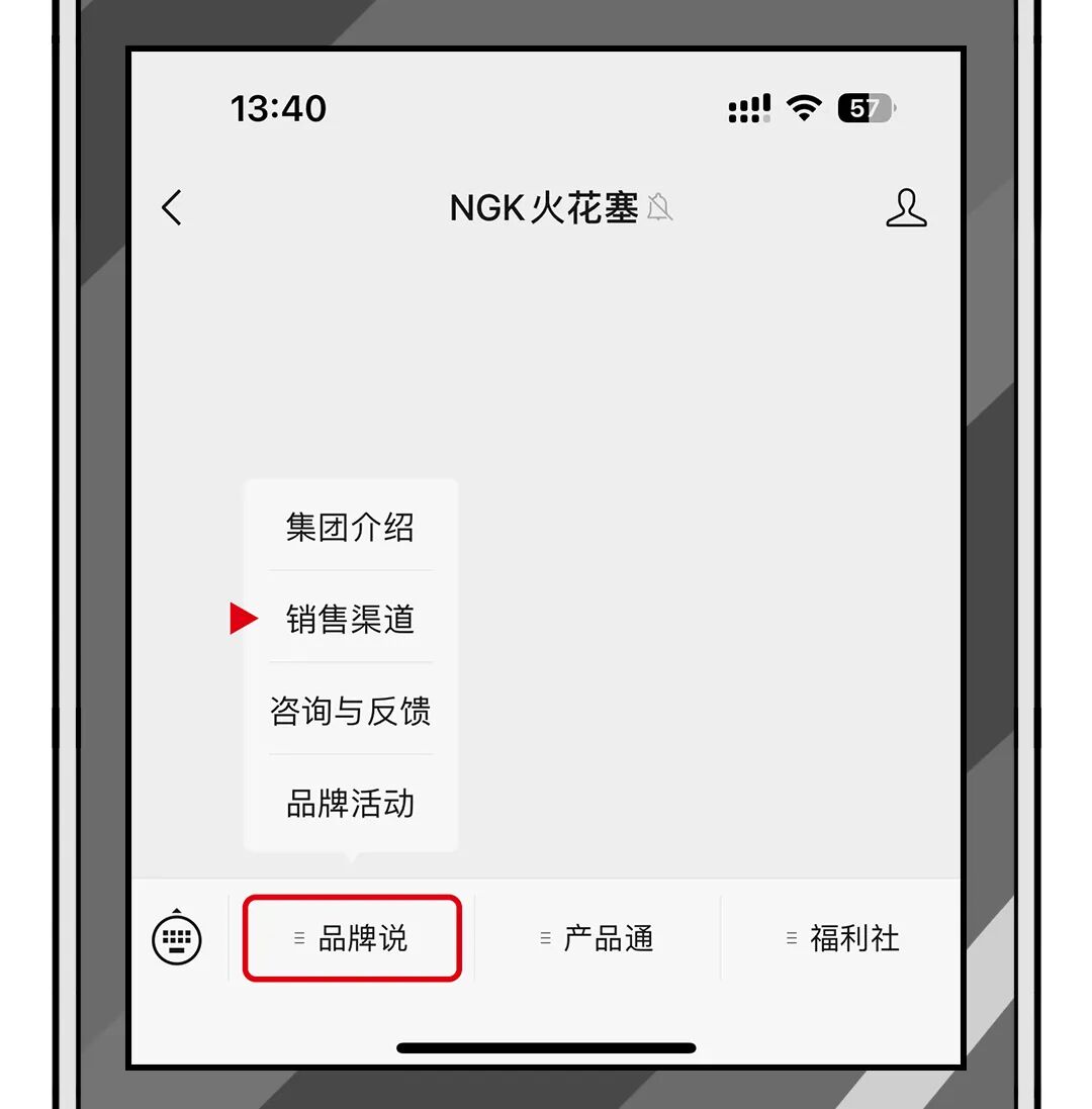 对于广大消费者而言,最重要的就是认准购买渠道,线上购买可从【NGK火花塞】公众号菜单栏【品牌说】-【销售渠道】中进行查询。