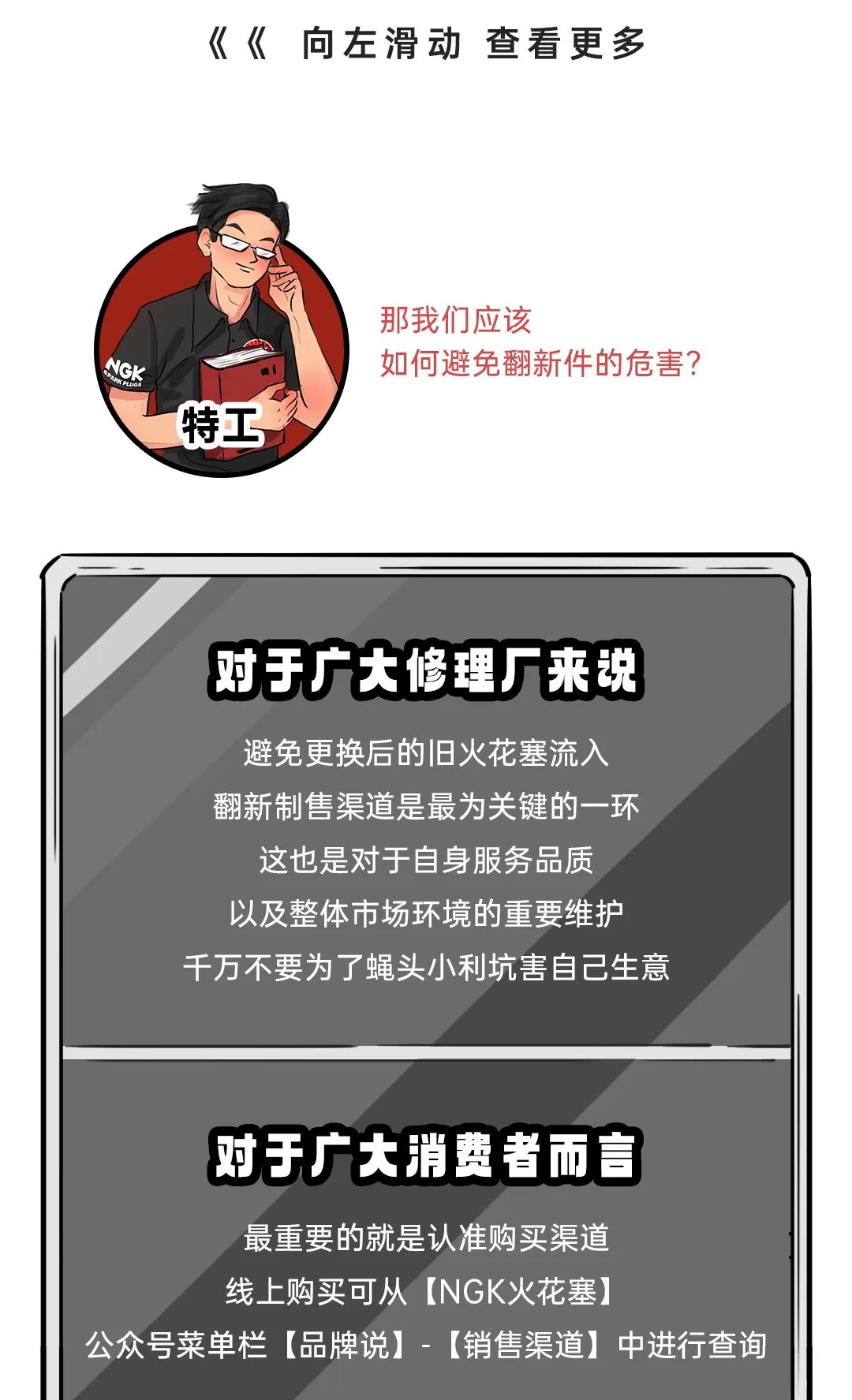 对于广大修理厂来说,避免更换后的旧火花塞流入翻新制售渠道是最为关键的一环。这也是对于自身服务品质,以及整体市场环境的重要维护,千万不要为了蝇头小利坑害自己生意。