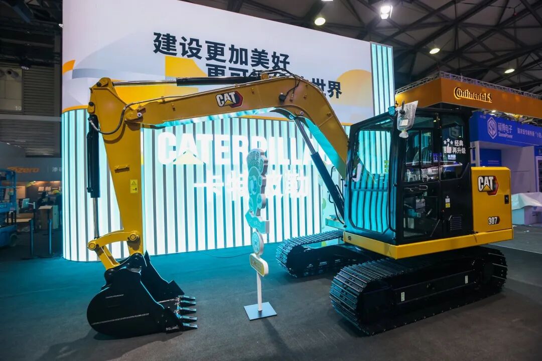 共计11台大中小型挖掘机和推土机呈现在卡特彼勒展台,均具备全新升级的燃油效率和数字系统。