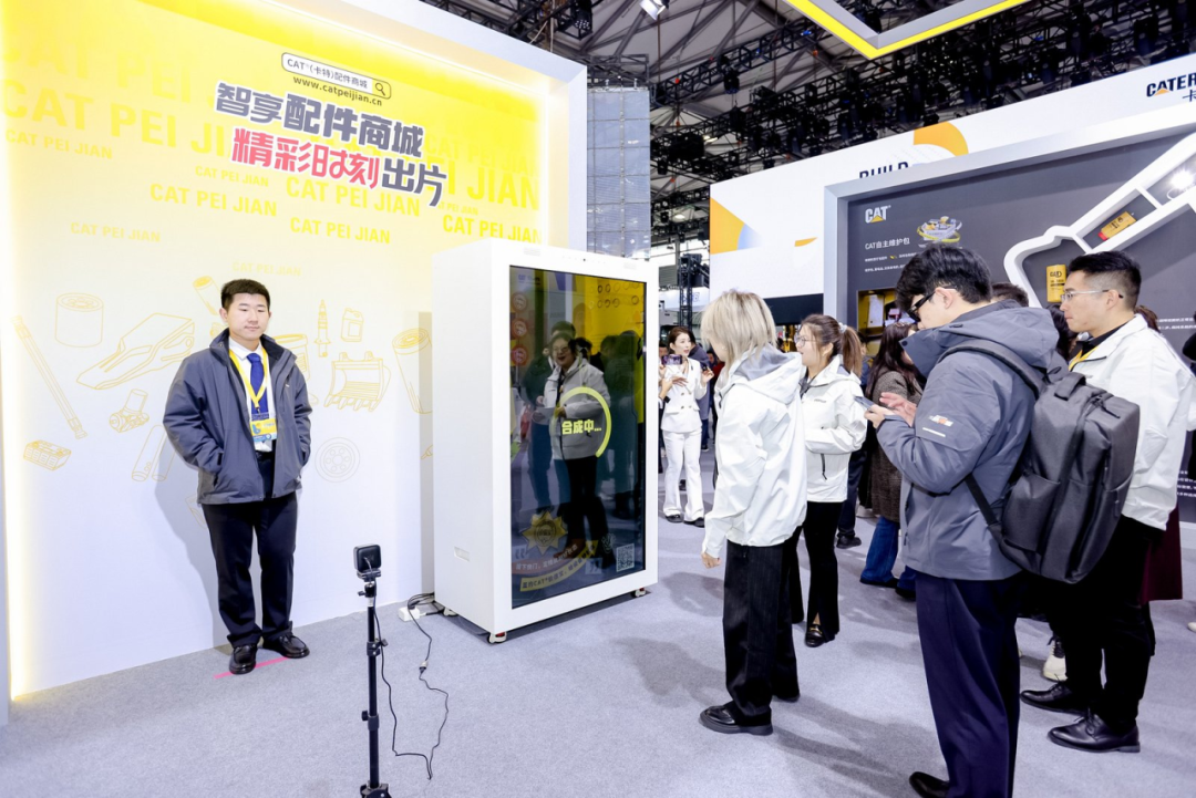 Cat®配件商城展区结合了智能AI科技,在展区设置了全息仓智能拍照机,一键定制个性化卡通角色,3秒即可出片。