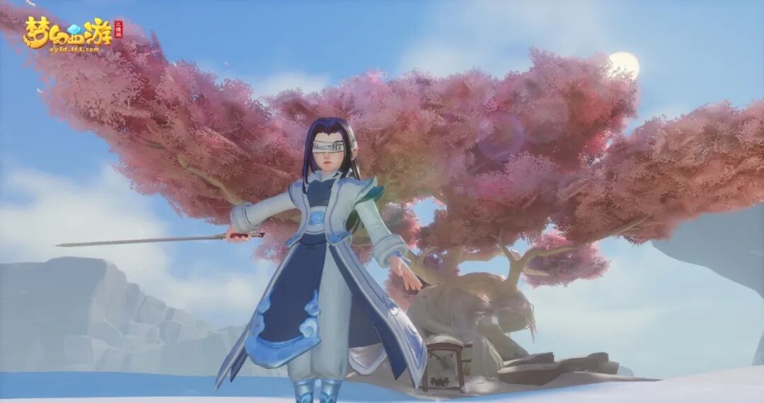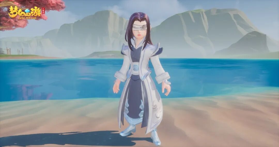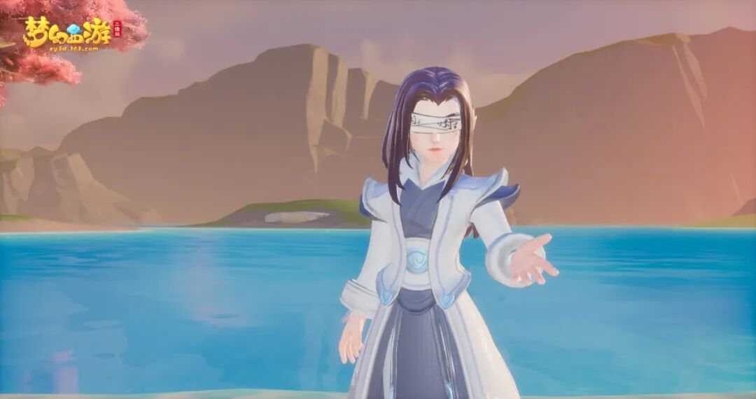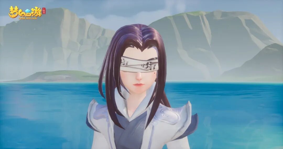 白色发带束起发尾,一块白布封住他的双眼,自带禁语的白布不可轻易揭开。自此,手中武器便是他的双目。