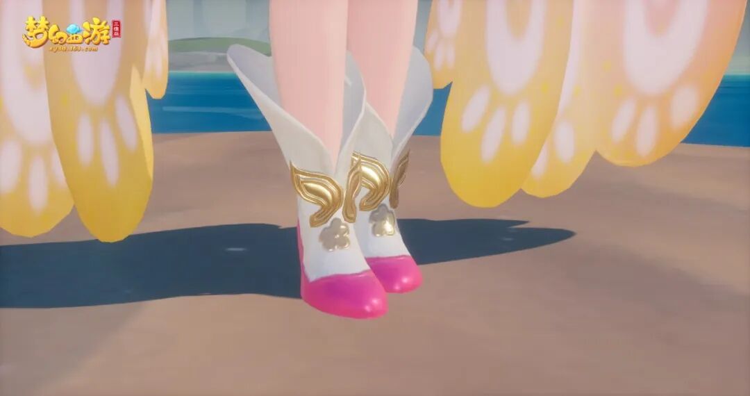两袖如蝴蝶振翅,翅尾如落日余晖,白色泣珠纹路清晰可见,整体十分活泼。