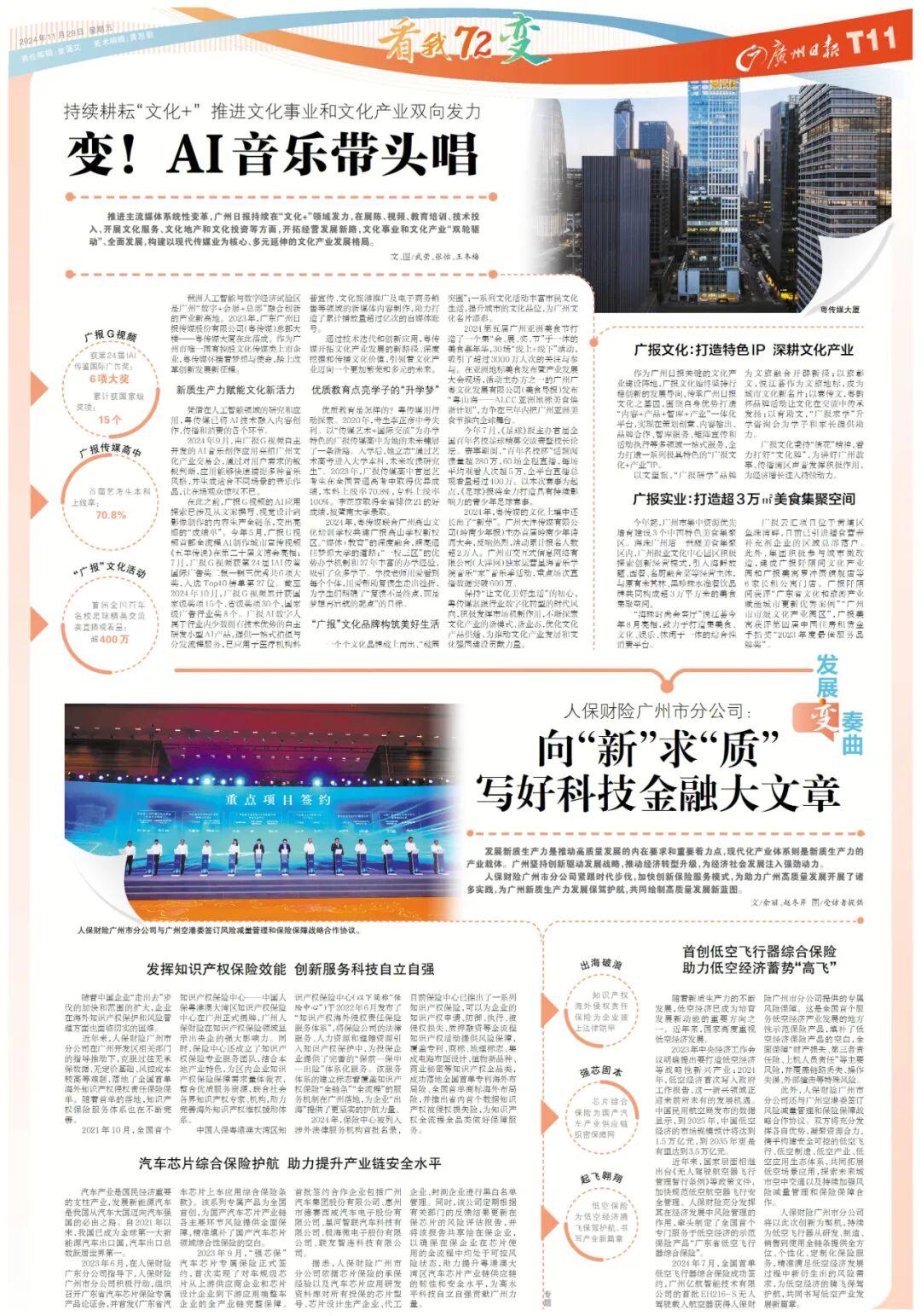 推进主流媒体系统性变革,广州日报持续在“文化+”领域发力,在展陈、视频、教育培训、技术投入、开展文化服务、文化地产和文化投资等方面,开拓经营发展新路,文化事业和文化产业“双轮驱动”、全面发展,构建以现代传媒业为核心、多元延伸的文化产业发展格局。![]()