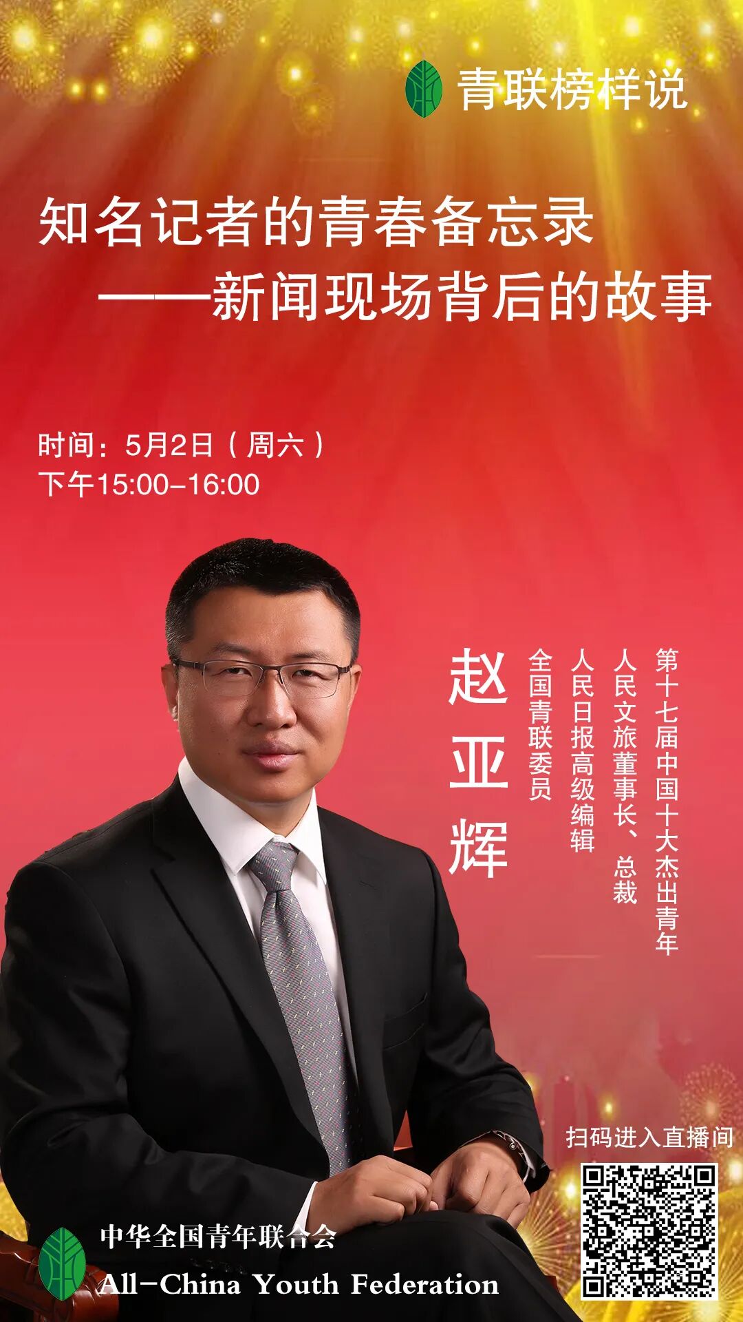 主讲嘉宾:赵亚辉,全国青联委员,人民日报高级编辑,人民文旅董事长、总裁,第17届中国十大杰出青年,全国优秀新闻工作者,第十届中国青年科技奖获得者。