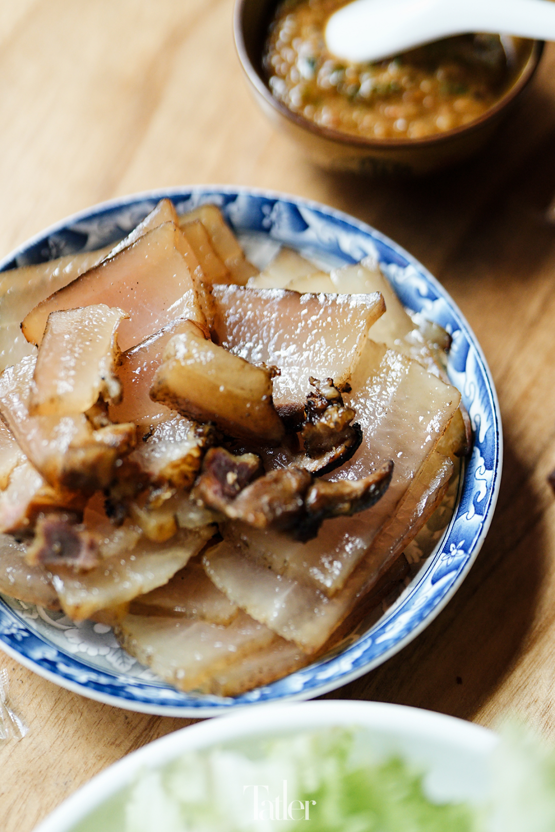 中午在农户的家里吃饭,刚上了两道菜,我们就知道来叶日村的另一个原因了——这户人家的菜做得非常好,就连黑珍珠餐厅的创始人和主厨也赞不绝口,特别是那盘琵琶肉,晶莹剔透,看上去几乎全部是肥肉,但是吃起来完全没有油腻的感觉,略脆的口感,嚼几下,完全在嘴里化开,没有丝毫杂味的香气弥散在口腔里,让人不由得再想续上一片。
