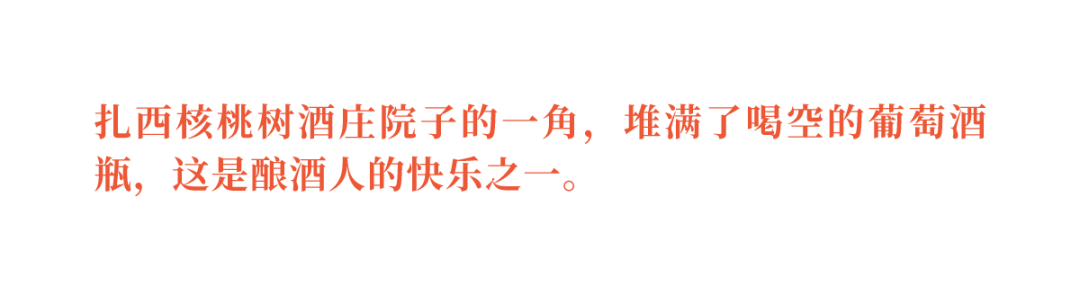 但是在扎西核桃树酒庄,他们就是想做更多的探索,看看在单一风土的情况下,每种葡萄会有什么不同的表现。从短期来看,这是一件与金钱无关的事情;从长期来看,这似乎又与经济效益有着隐隐的关系。