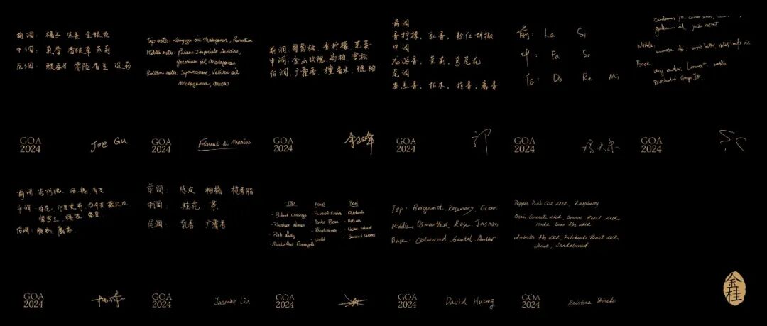 本届金桂奖,金桂奖与调香师们共同策划了一场特别的创作活动——无主题限制、无国界之分,与德之馨、芬畅、芬美意、和韵、乐尔福、罗伯特、法国曼氏、铭康、奇华顿、双马、IFF共11家香精香料公司合作,带来11款金桂奖2024调香师特别创作香。
