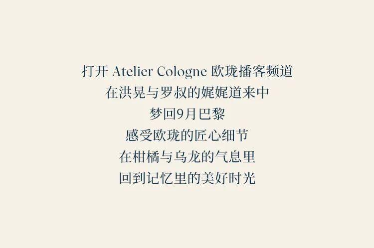 文章内容来源于公众号:AtelierCologne法国欧珑,点此可查看原文,内容版权归相关企业所有,本网站仅供交流学习。若涉及版权问题或存在侵权情况,请及时与我们联系,我们将第一时间进行删除处理。