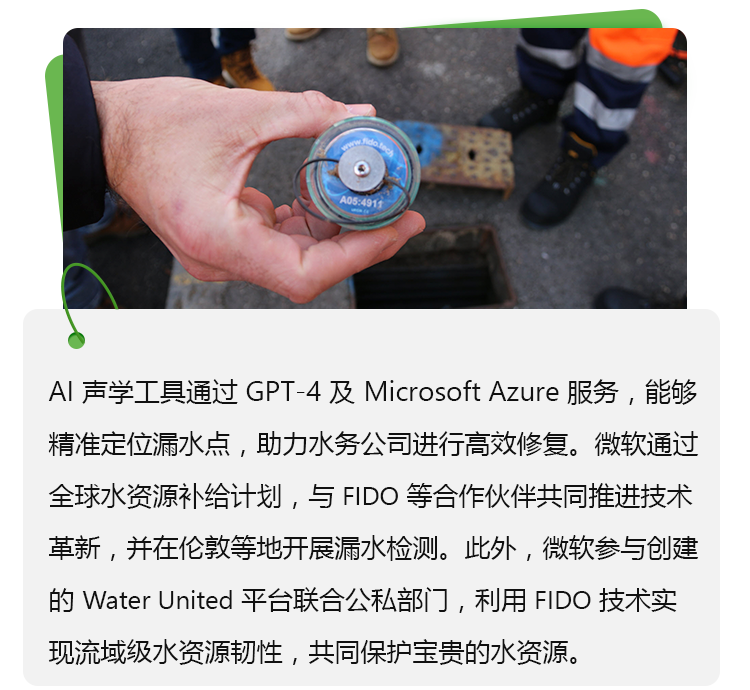 微软与FIDO的合作便是其中的一个例子。自2023年起,微软便与泰晤士水务公司签订了一份合同,在伦敦部分地区开展漏水检测。此外,微软还在伦敦举办的微软黑客松活动期间,助力FIDO提升其漏水检测技术。FIDO的AI工具依托OpenAI的GPT-4及Microsoft Azure OpenAI服务,将声学漏水检测提升至全新高度。