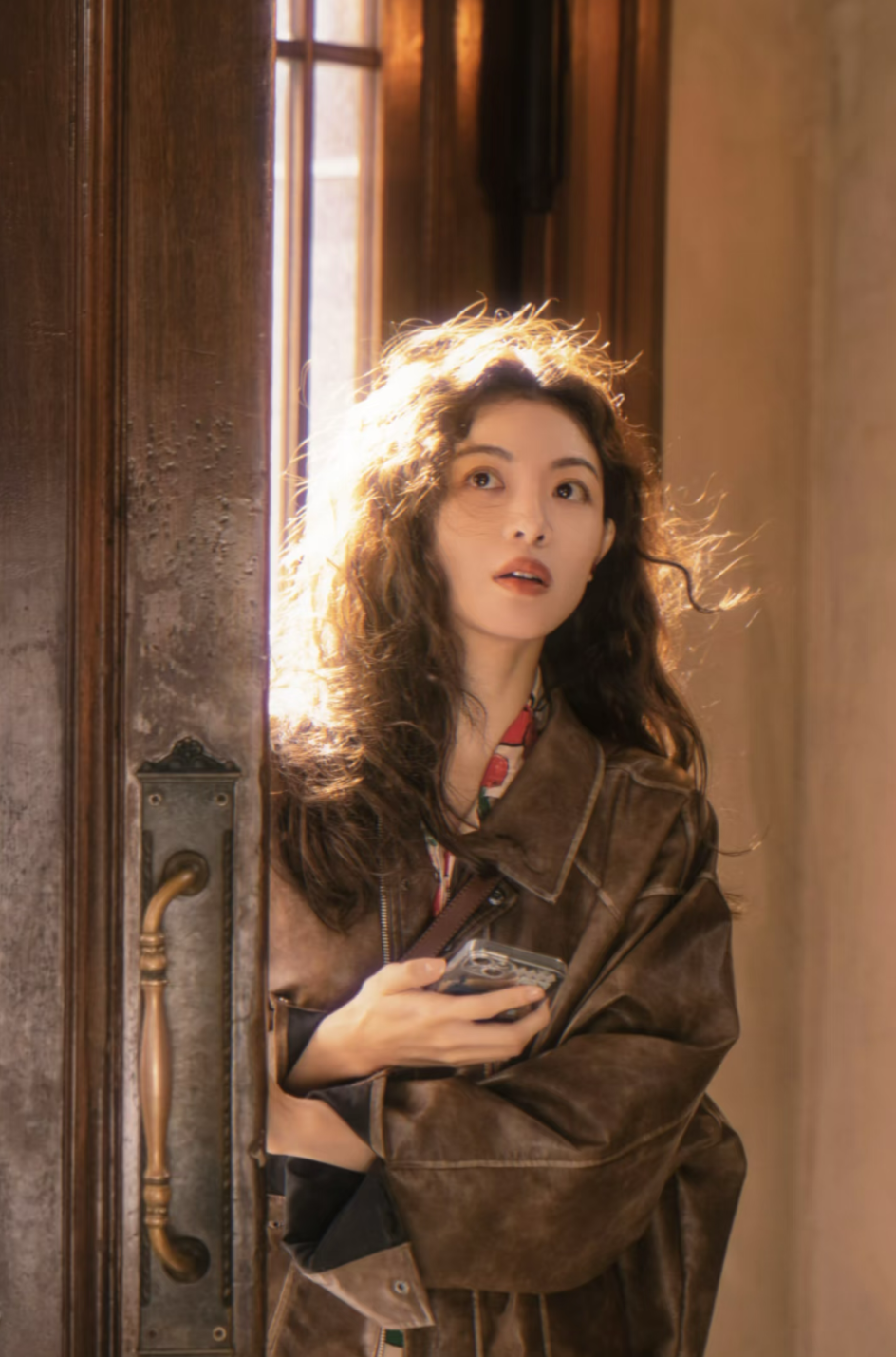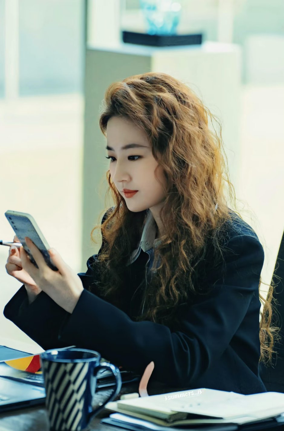 像子枫妹妹的卷发就没有那么强的攻击力,但散在一边就会给人一种如沐春风温柔的感觉。
