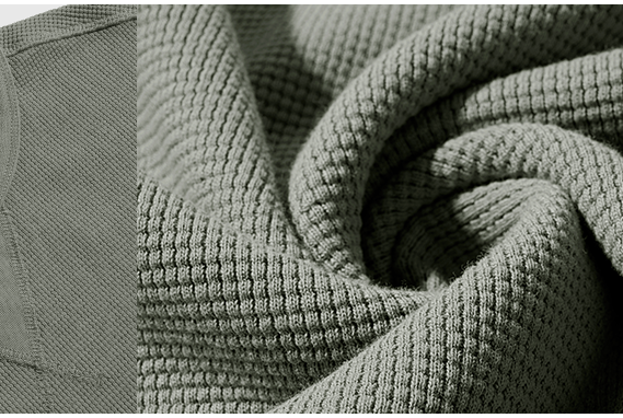 男款卫衣则是巧妙运用肌理元素,让原本单一的纯色卫衣更加别具一格。特有的凸起状小方格匀整排布,仿佛华夫格表层的凹凸肌理,不仅精致有型,更增加了面料视觉的趣味性和层次感。领口经典的V-INSERT倒三角结构,起到一定装饰作用的同时,还能有效导出领口和胸口的汗湿,让身体保持舒爽的肤感。