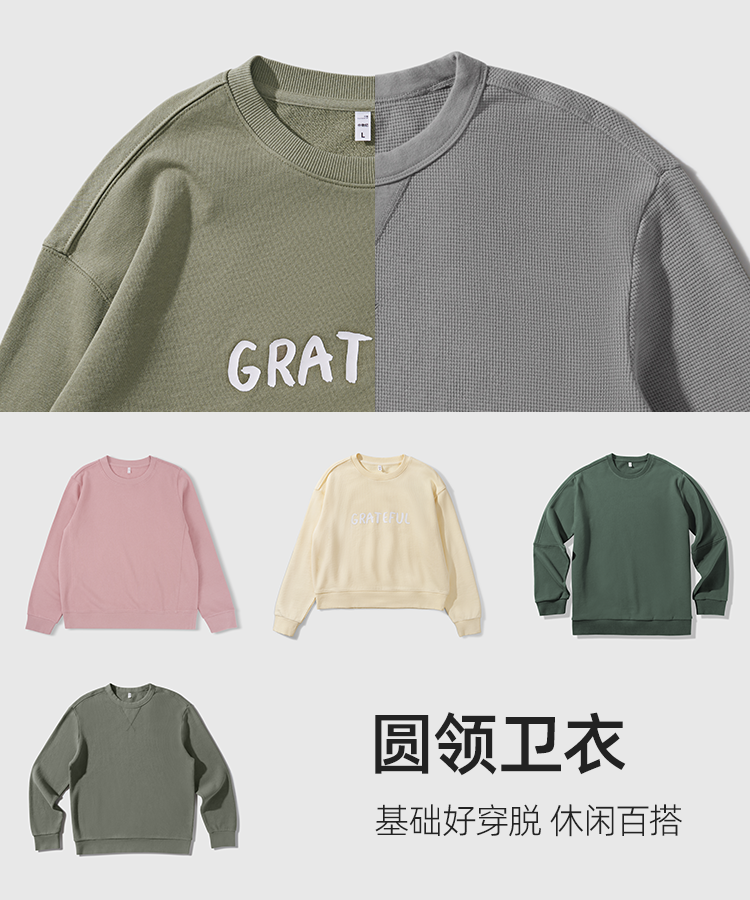 圆领卫衣作为许多人选择卫衣的入门款,它基础好穿脱,休闲感、搭配性都尤为突出。外出逛街、日常上班不知道穿什么的时候,选它准不会出错,舒服又方便,完全就是懒人出门的宝藏单品。