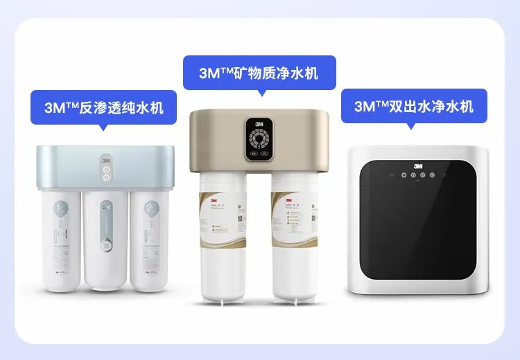 作为专业净水品牌,3M全屋净水通过对我国水质现状的深入了解,以及国民膳食和饮水习惯的掌握,研发出丰富且齐全的产品系列,不仅有大通量“反渗透纯水机”,更以“矿物质净水机”受到宝爸宝妈、运动及保健养生达人、家庭煮夫煮妇等广大用户的好评与推荐,还有同时满足多种水质需求的“双出水净水机”。