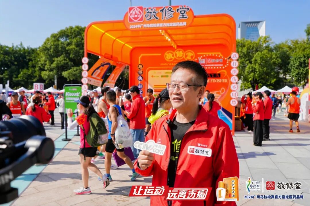 程宏辉在接受央视网等媒体采访时表示,一直以来,敬修堂专注跌打风湿药物的生产,经典产品跌打万花油已有百余年的历史,作为陪伴很多老广成长的产品,早已成为了居家旅游必备良药。敬修堂与广马携手,是新时代传统中药文化与健康运动热潮的激情碰撞。当老字号遇上新潮流,敬修堂用实际行动引领健康生活。作为致力于守护国民健康的中华老字号药企,敬修堂也会继续以实际行动支持这一场在家门口举行的运动盛事,助力健康中国。