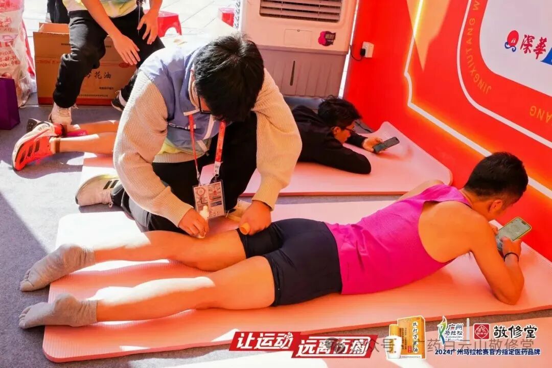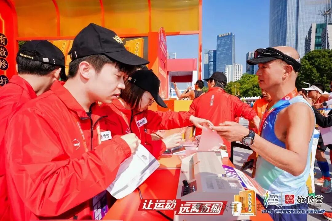 完赛后,终点处赛后服务区敬修堂展位上,健康守护仍在继续。理疗师们用敬修堂跌打万花油为完赛的跑友们进行拉伸按摩,缓解肌肉的疲劳和紧张;工作人员帮助跑友们过塑号码牌,封存珍贵回忆;跑友们还能在留影区拍摄专属照片,留下难忘美好的瞬间。