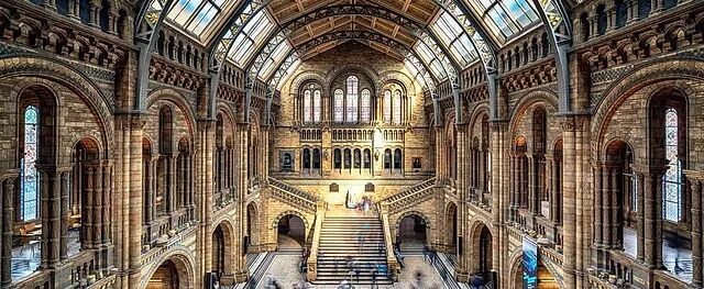 位于英国伦敦的英国自然历史博物馆(Natural History Museum)是世界上最著名的自然历史博物馆之一,致力于展示地球和生命的演变。博物馆成立于1881年,其建筑本身也极具历史意义,采用了维多利亚时代的哥特式风格,外观华丽,内部空间宽敞。
