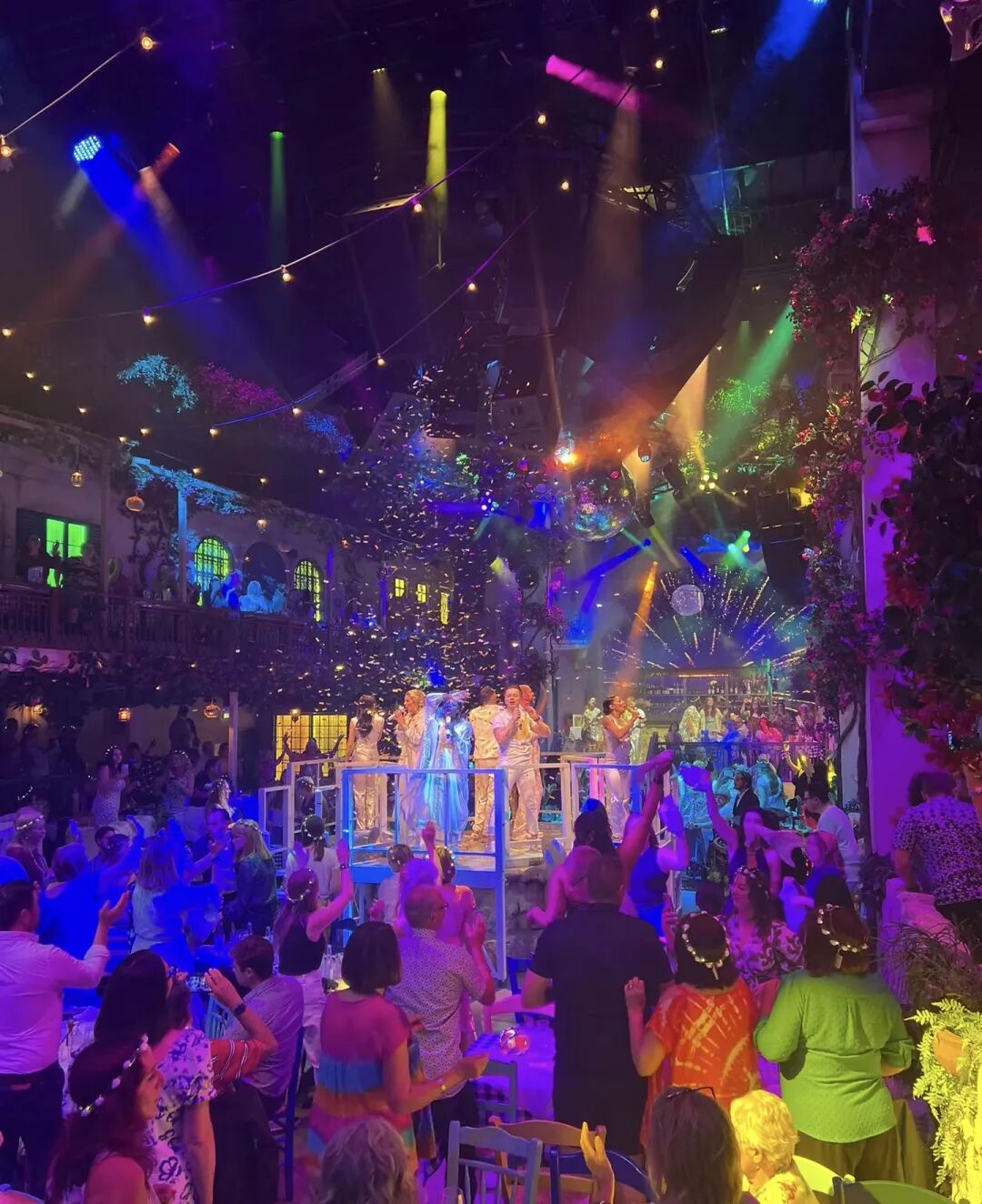 沉浸式版本的《Mama Mia!》将传统的音乐剧体验提升到全新的层次,观众不再是被动的旁观者,而是能够与剧中人物和环境互动,身临其境地感受故事情节。现场完美还原了原剧中场景,一边享受晚宴一边通过创新的舞台设计和互动元素,沉浸式体验。
