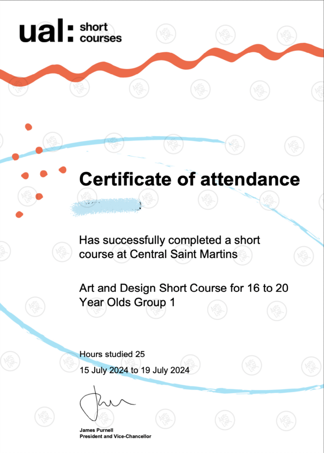 课程结束后,所有同学都将获得由伦敦艺术大学颁发的课程结业证书。