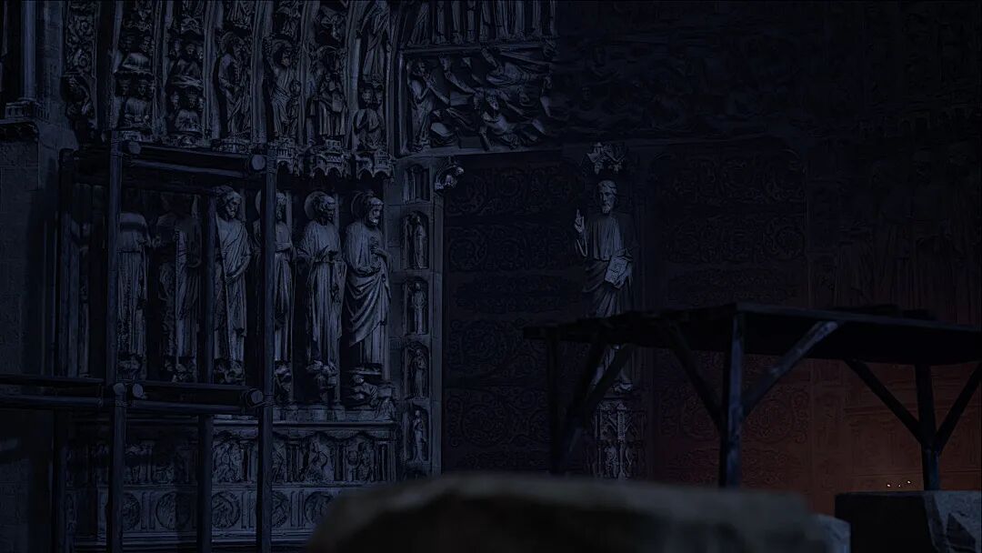 当小编进入本次VR之旅的1240年篇章时,《最后的审判》雕塑群映入眼帘,栩栩如生的人物表情、空气中弥漫的庄严气氛,都让人以为自己真的站在巴黎圣母院中央大门之前。