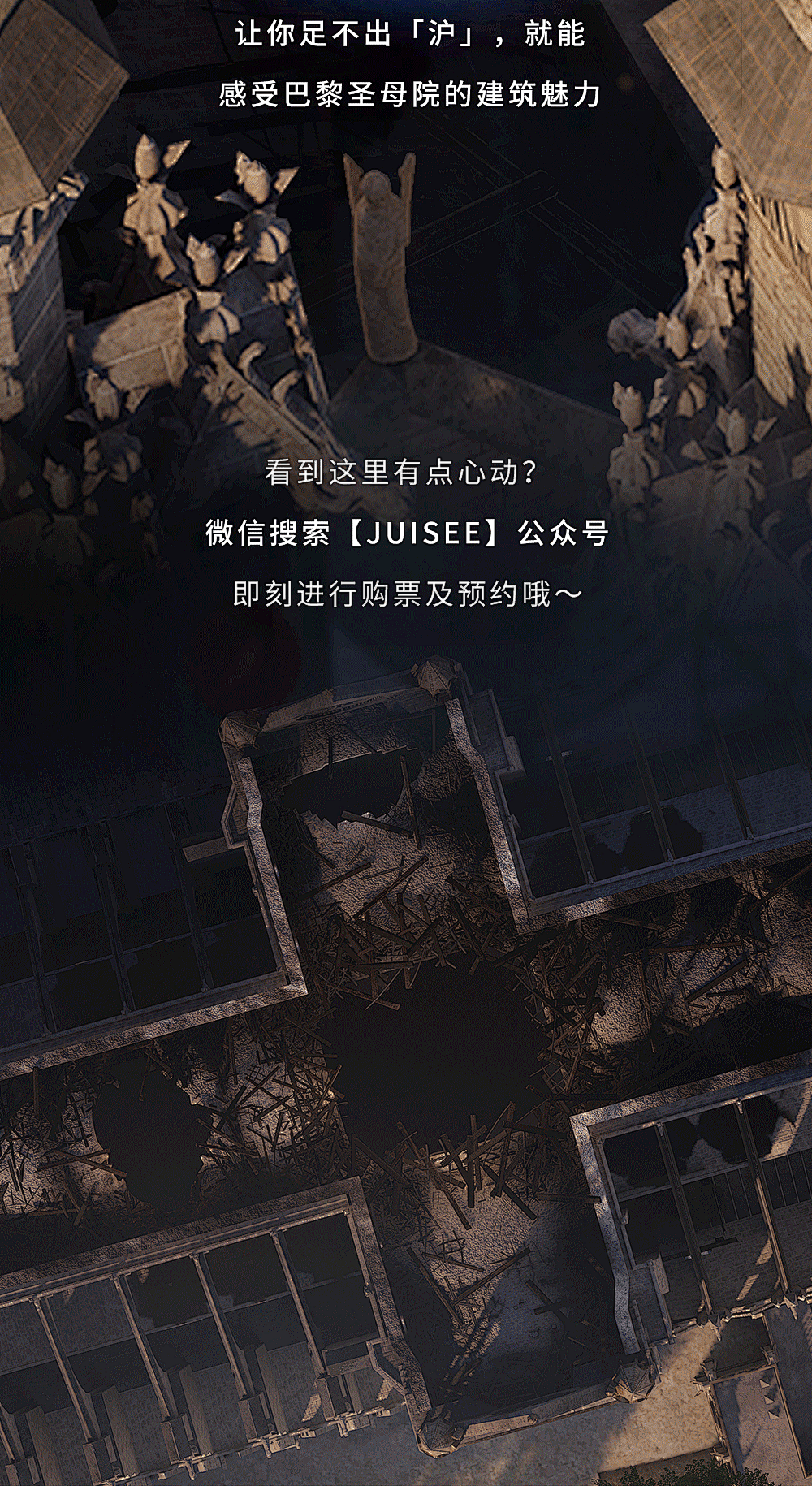 其实,在「永恒的巴黎圣母院」穿越时空沉浸式VR之旅所构建的1000㎡超大空间中,还有很多值得一看的精彩画面,就等你来一一解锁!