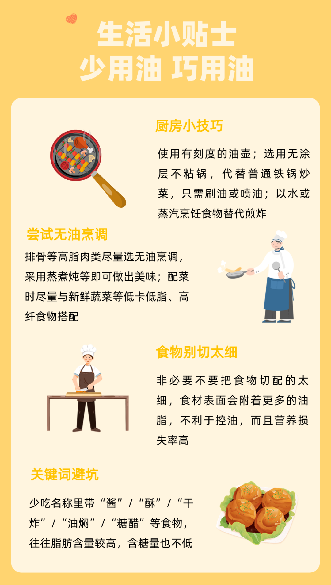 《中国居民膳食指南(2022)》中,对各年龄段人群每日烹调油的摄入量进行了推荐:健康成年人每天烹调油摄入量不超过25-30克。那日常生活中该如何科学控油呢?