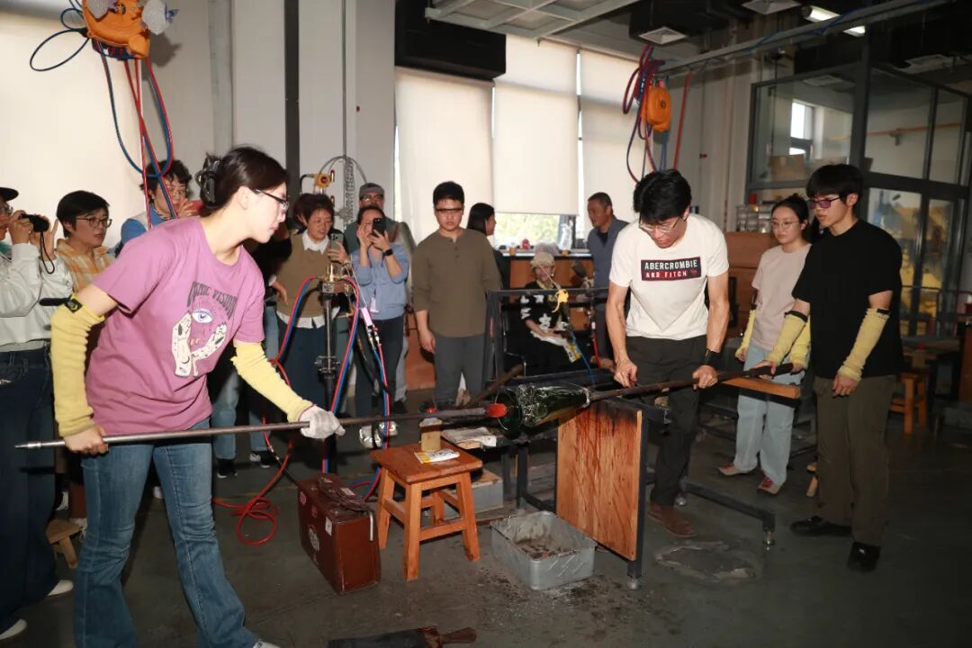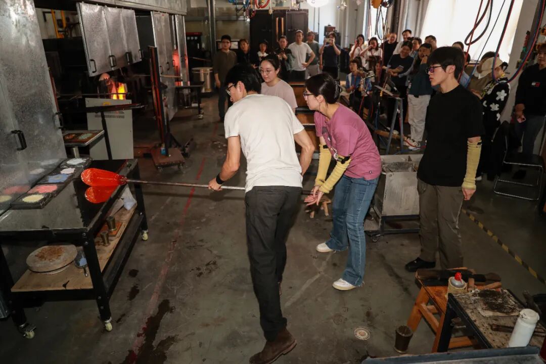 2024年10月15日中午,在清华大学美术学院分工会的精心筹备下,一场别开生面,题为“火之韵:探索吹制玻璃的艺术之美”的实践沙龙活动举办。在工艺美术系副主任李静老师及其团队的示范下, 大家近距离目睹了一件吹制玻璃作品从构思到成形的全过程,深刻体会到了玻璃艺术的魅力。