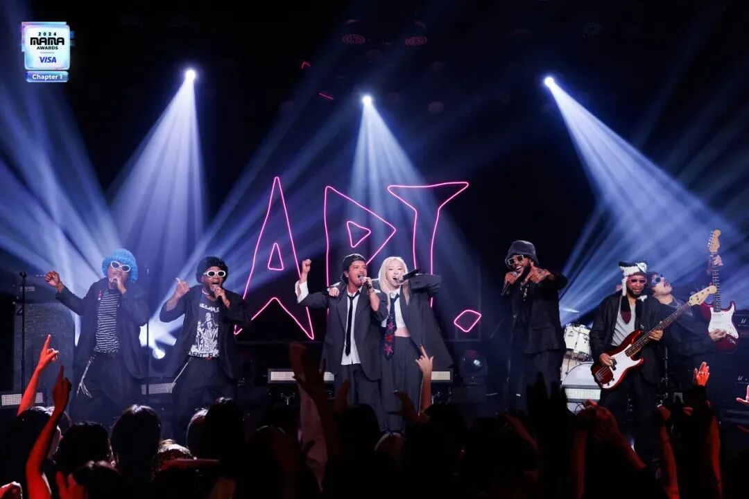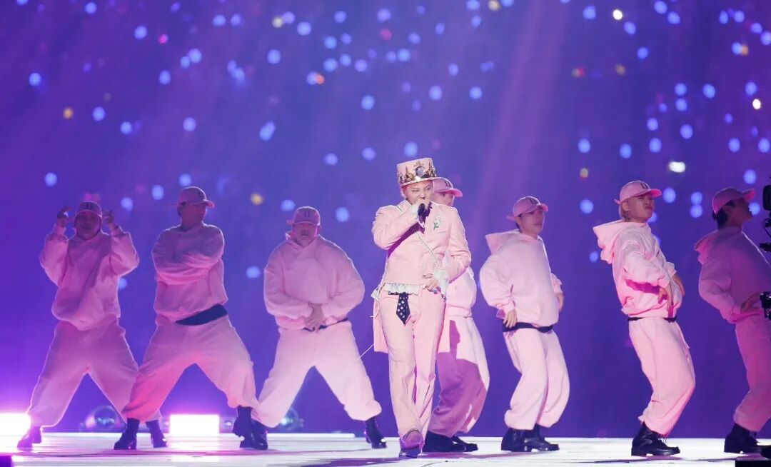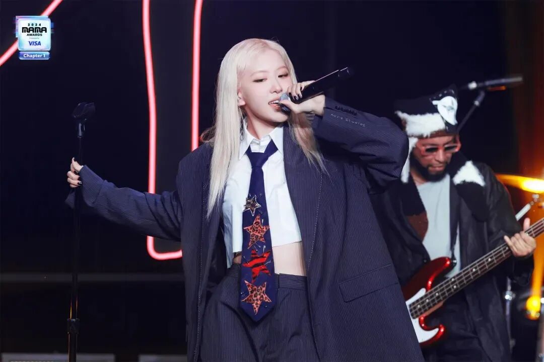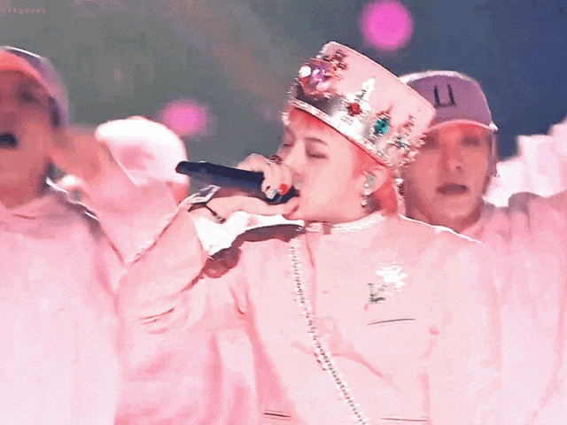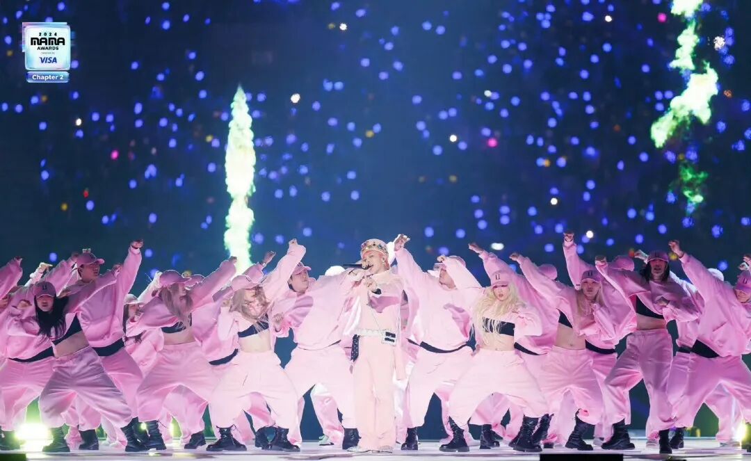 除了引人瞩目的粉色舞台,MAMA造型中的花式头巾也让人联想到新曲《POWER》MV。