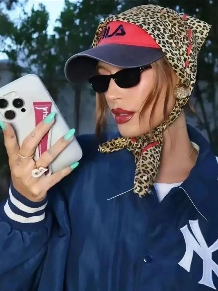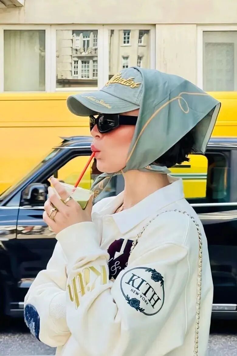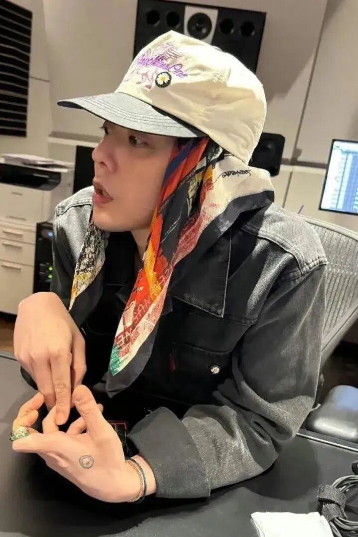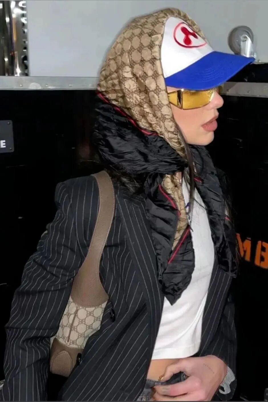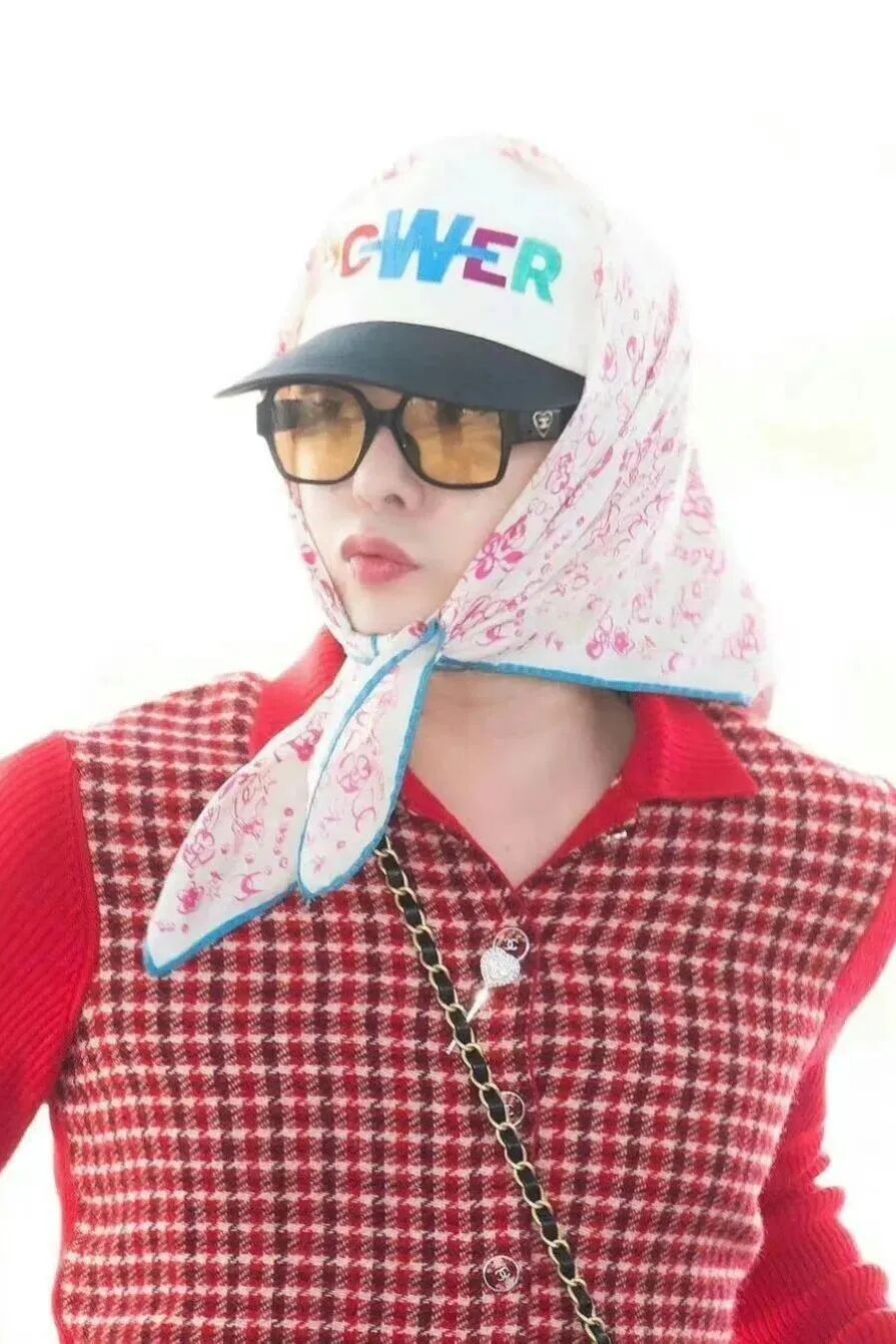 不过,如果想要头型更加饱满立体,可以直接一键Copy GD的混搭大法,用头巾+棒球帽,轻松就能凹出完美比例的高颅顶造型!