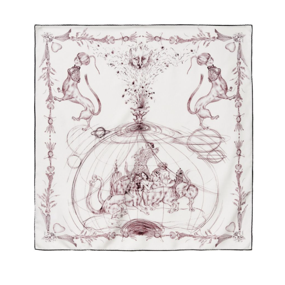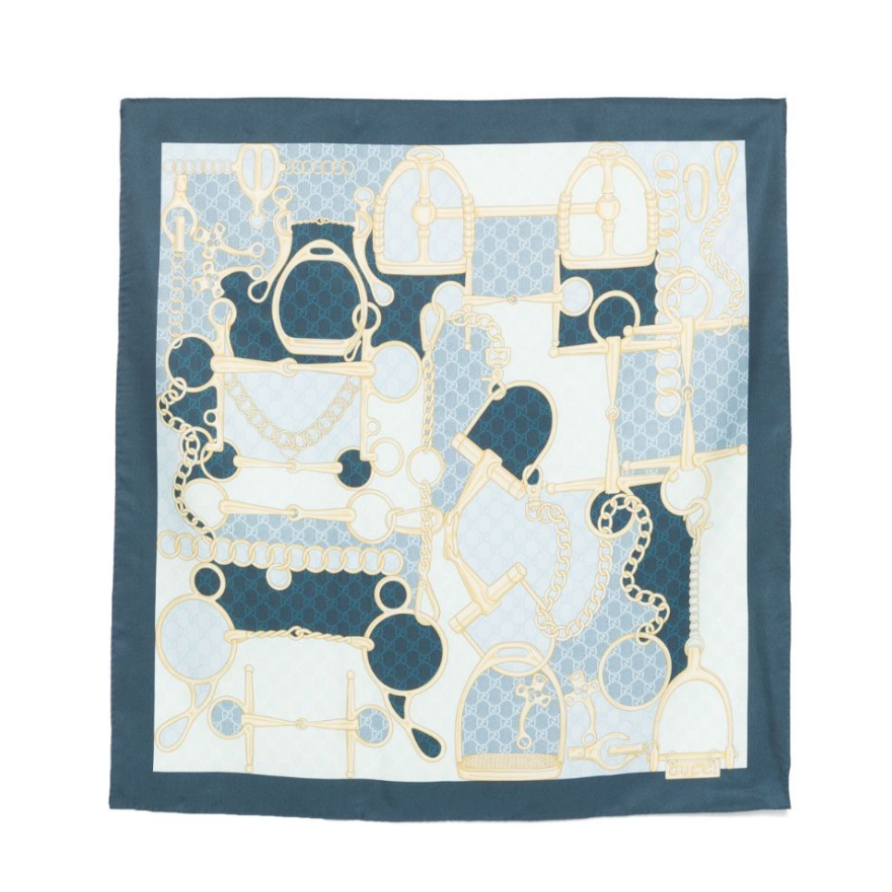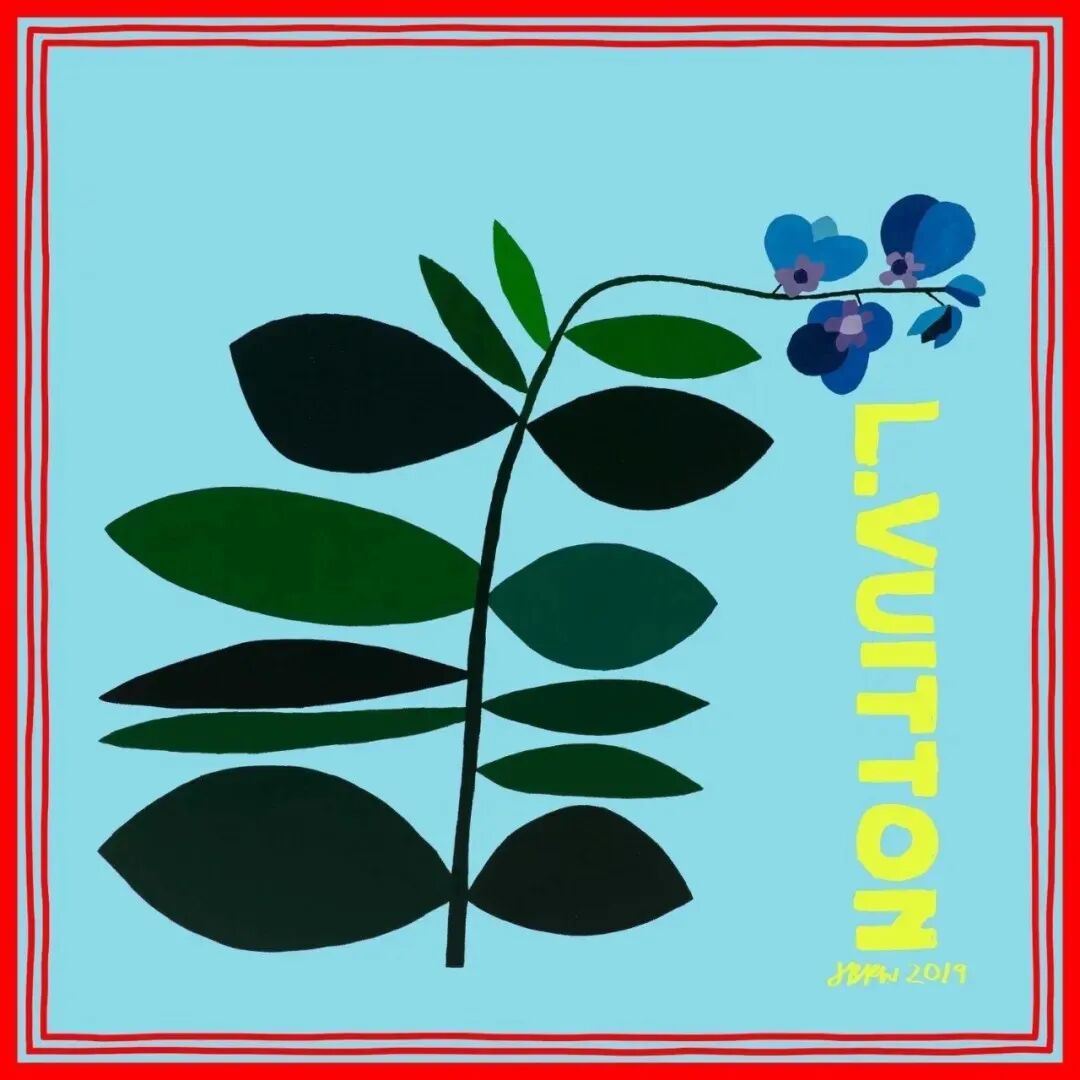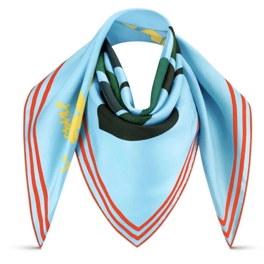 这款头巾是2019年LOUIS VUITTON与洛杉矶艺术家Jonas Wood 的联名合作款,亮蓝色为底,再添上红色边纹,鲜亮又特别。