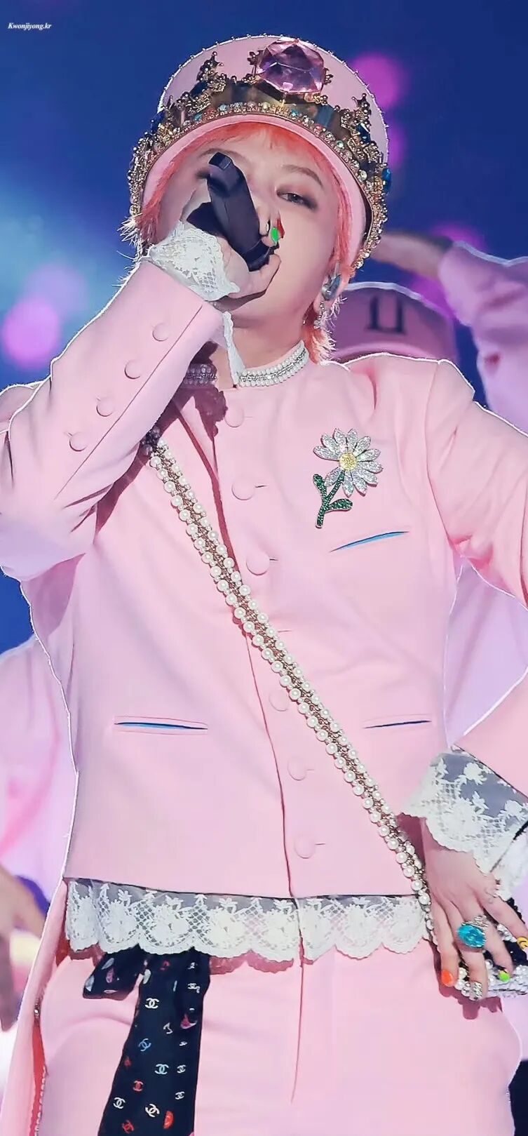 舞台放眼望去是一大片梦幻的粉色,再加上GD本人的橘粉发色,营造出浪漫的反转魅力~