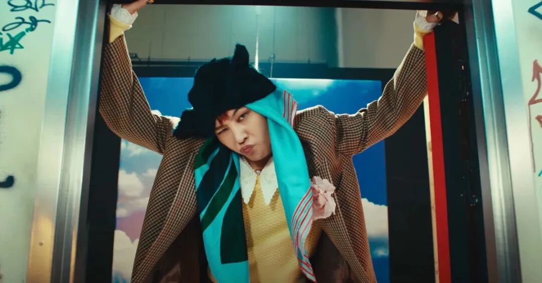 其中最显眼的当属MV中头巾与帽子的叠戴,GD以此致敬20世纪Hip-Hop的黄金时代,格纹西装的优雅与嘻哈风头巾的碰撞张力十足。