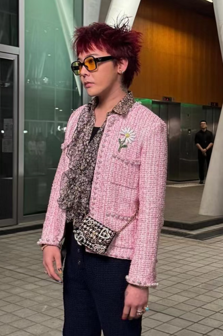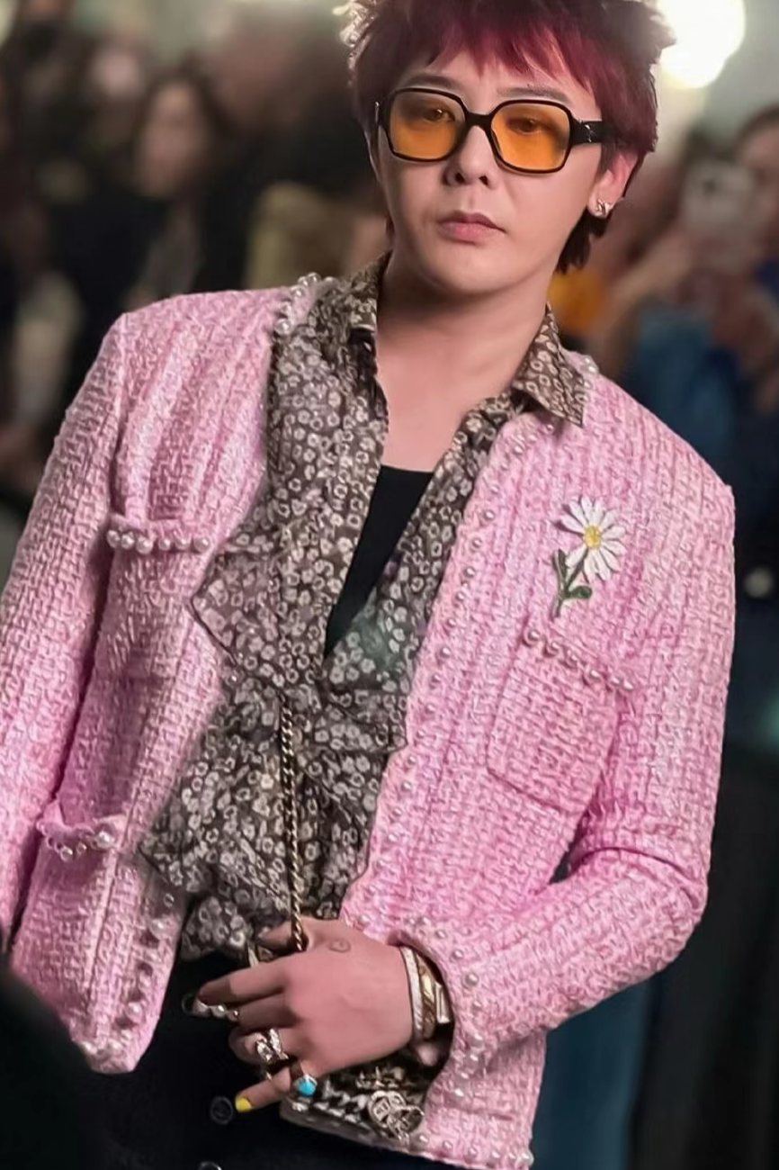 此外,还有香奈儿的粉色套装、珍珠斜挎包,以及Jacob Arabo定制的小雏菊胸针、蓝绿色碧玺戒指……时尚这块儿,还得看GD!