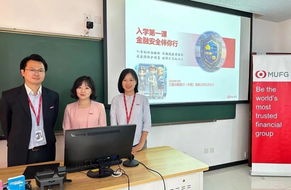 2024年10月10日,三菱日联银行(中国)有限公司北京分行(以下简称“三菱日联银行北京分行”)在北京语言大学成功举办了面向大一新生的金融安全知识讲座。本次活动旨在响应国家号召,向社会特别是大学生群体宣传推广金融安全知识。该活动得到了校方的大力支持及高规格对应,精心安排了教室并组织了60余名学生参加此次宣讲会。