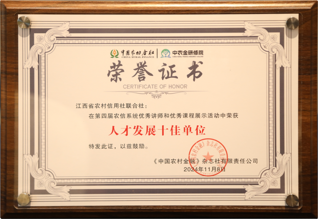 日前,由中国农村金融杂志社、中农金研修院举办的第四届农信系统“优秀讲师”与“优秀课程”成果展示活动在贵阳圆满落幕。综合前期票选结果以及现场展示后的专家评审结果,江西省农村信用社联合社荣获人才发展十佳单位奖,派出的选手3人荣获金牌讲师,1人荣获银牌讲师,11人荣获优秀讲师,2人荣获金牌课程,4人荣获优秀课程,实现活动奖项“大满贯”,获金牌总数在参赛的18个代表队中位居第一,这也是省联社代表队连续四届在全国农信系统“优秀讲师”与“优秀课程”展示活动中取得佳绩。